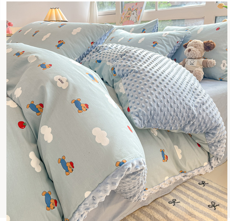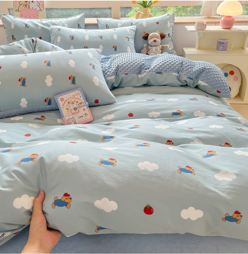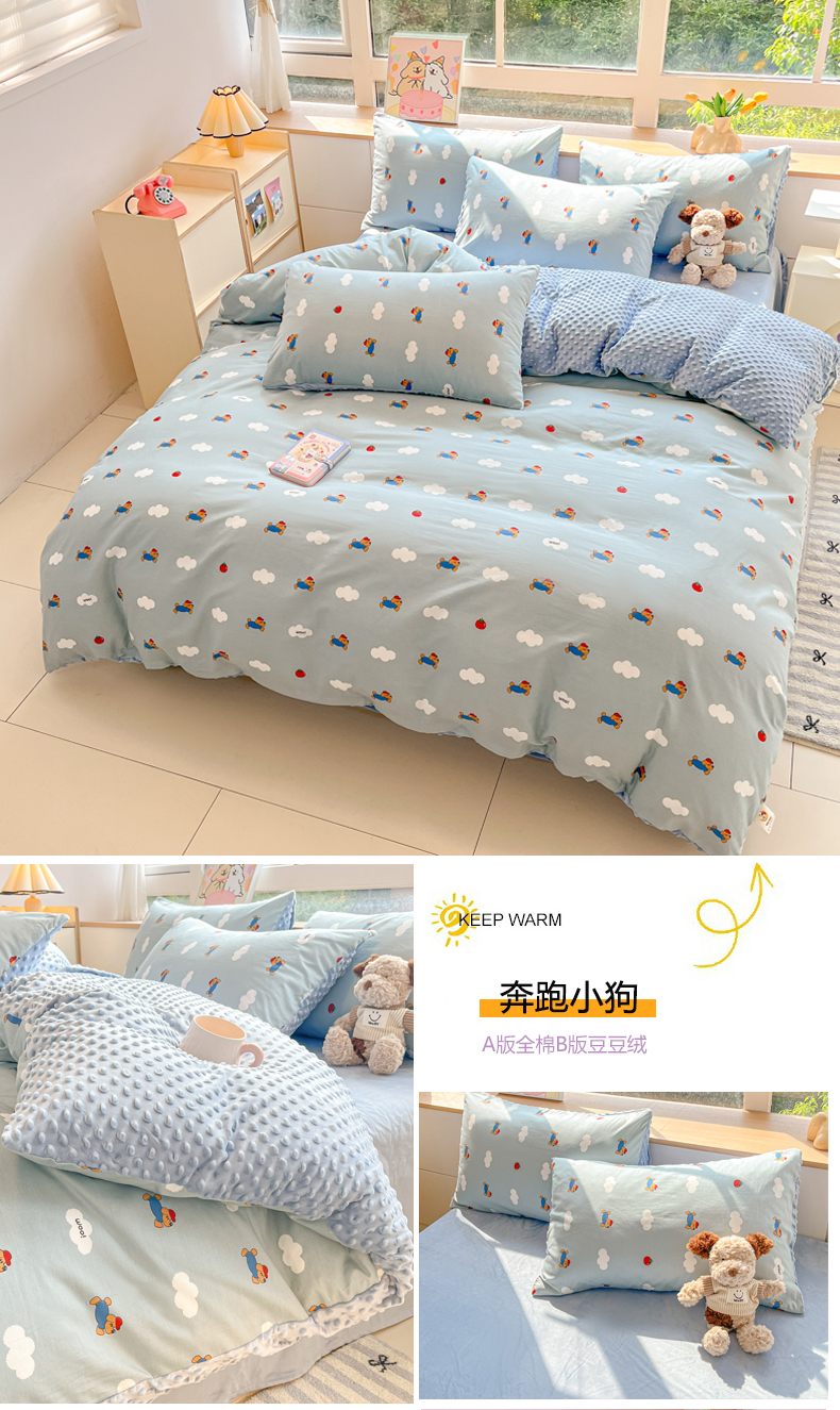 当前位置: 91家纺网 > 商品网购 > 床品套件 > 四件套 > 其它四件套 > 麦伦家居 2024秋冬新品 多功能床品全棉+豆豆绒四件套卡通小清新系列 奔跑小狗