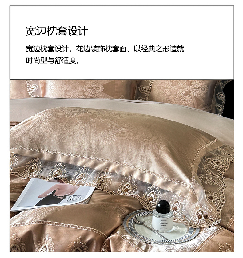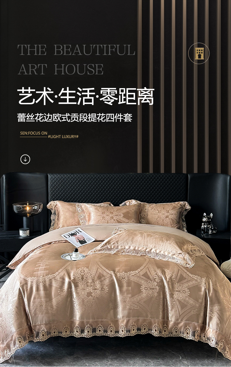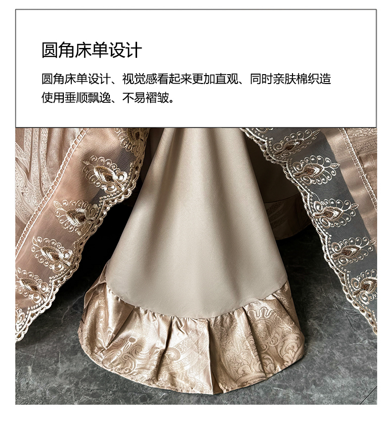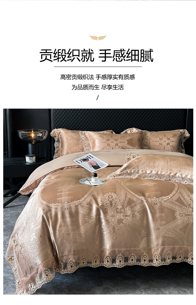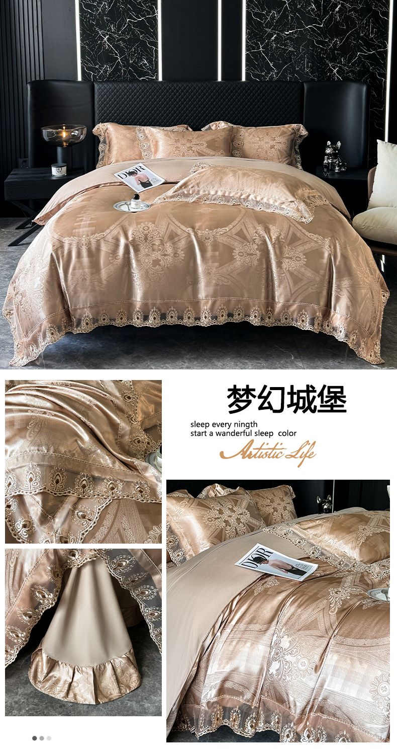 商品名称:七夜居 2025新款蕾丝花边欧式贡缎提花四件套礼盒装 梦幻城堡