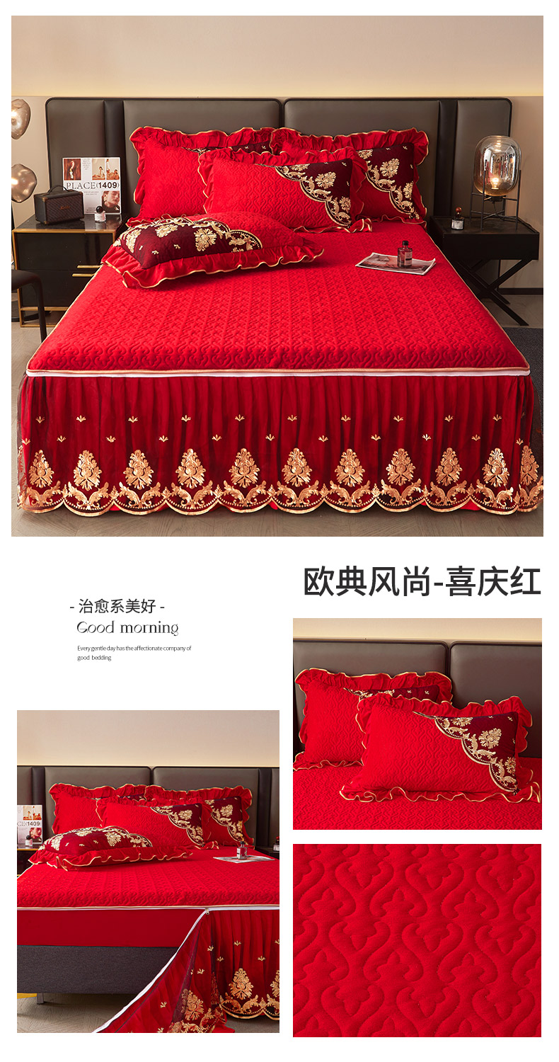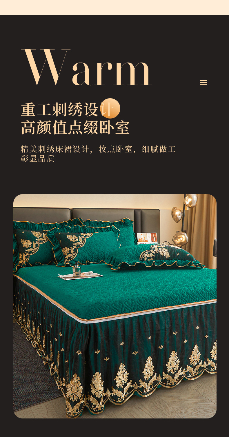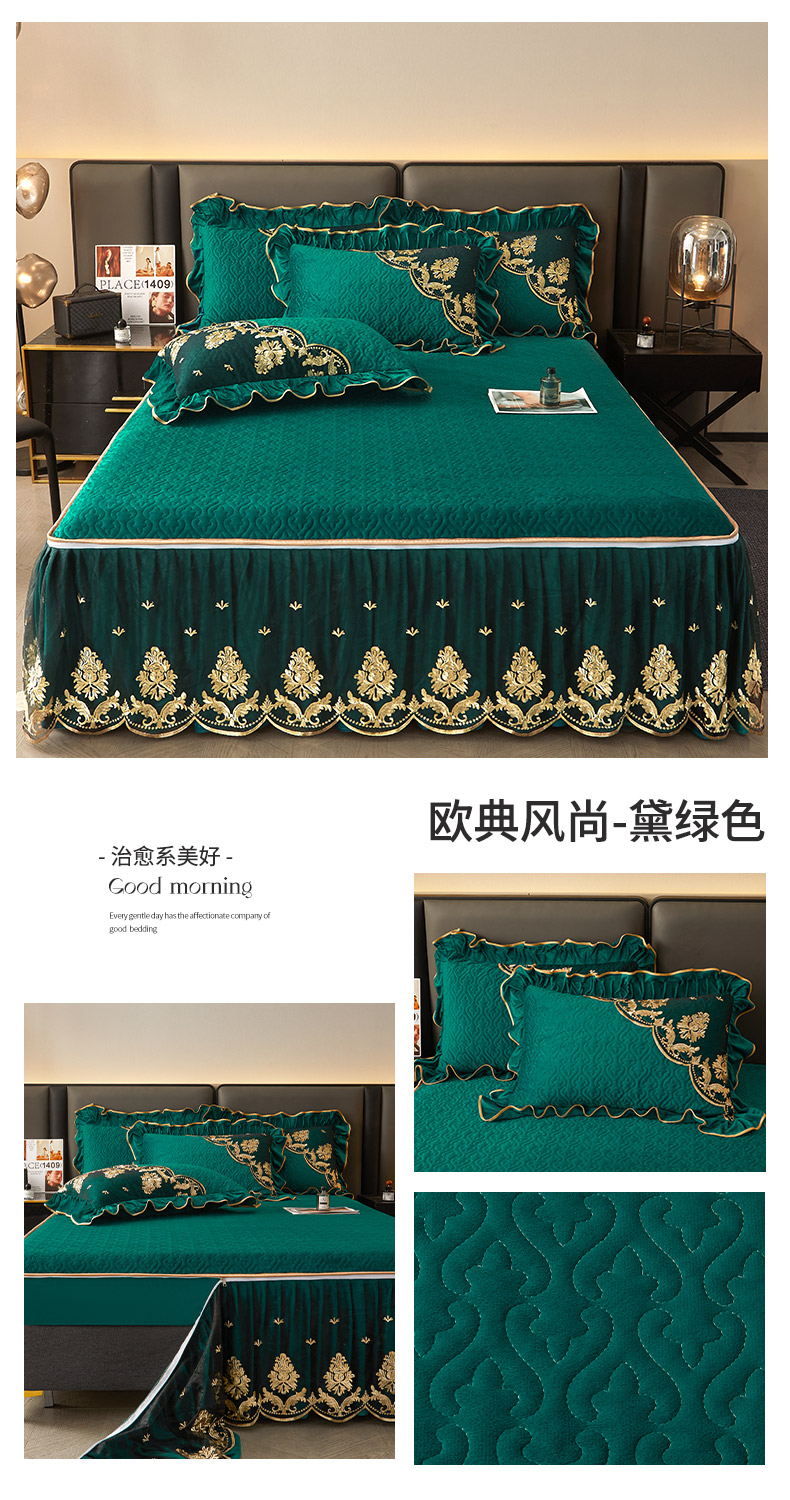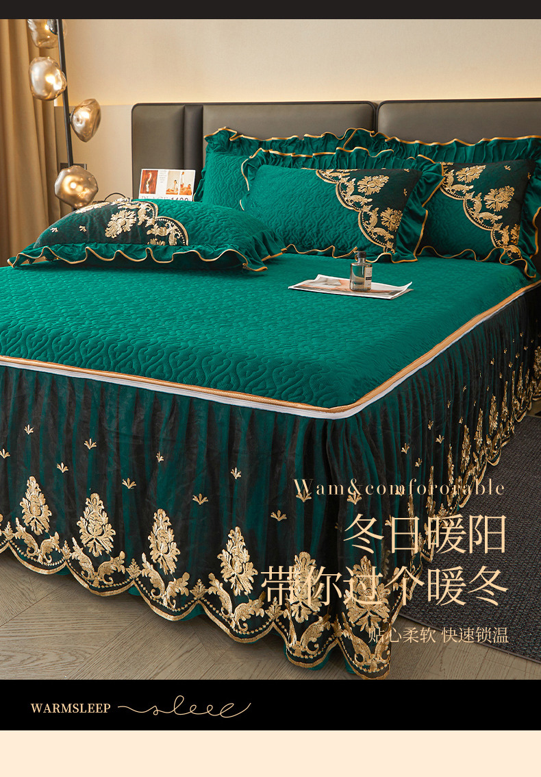 商品名称:(总)罗艺轩 2024新款高克重水晶绒夹棉床裙三件套-欧典风尚