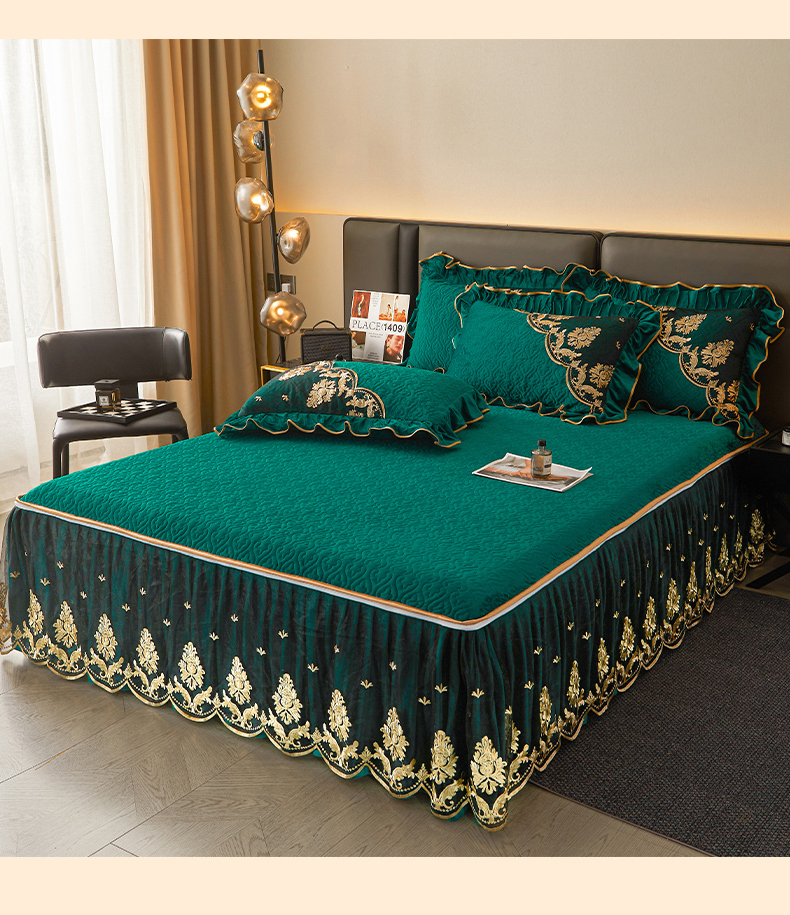 (总)罗艺轩 2024新款高克重水晶绒夹棉床裙三件套-欧典风尚