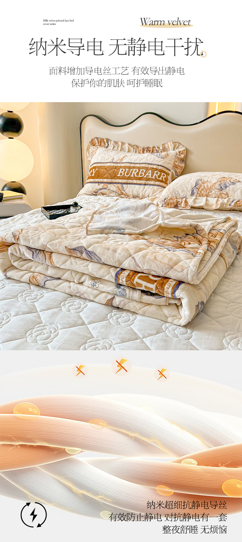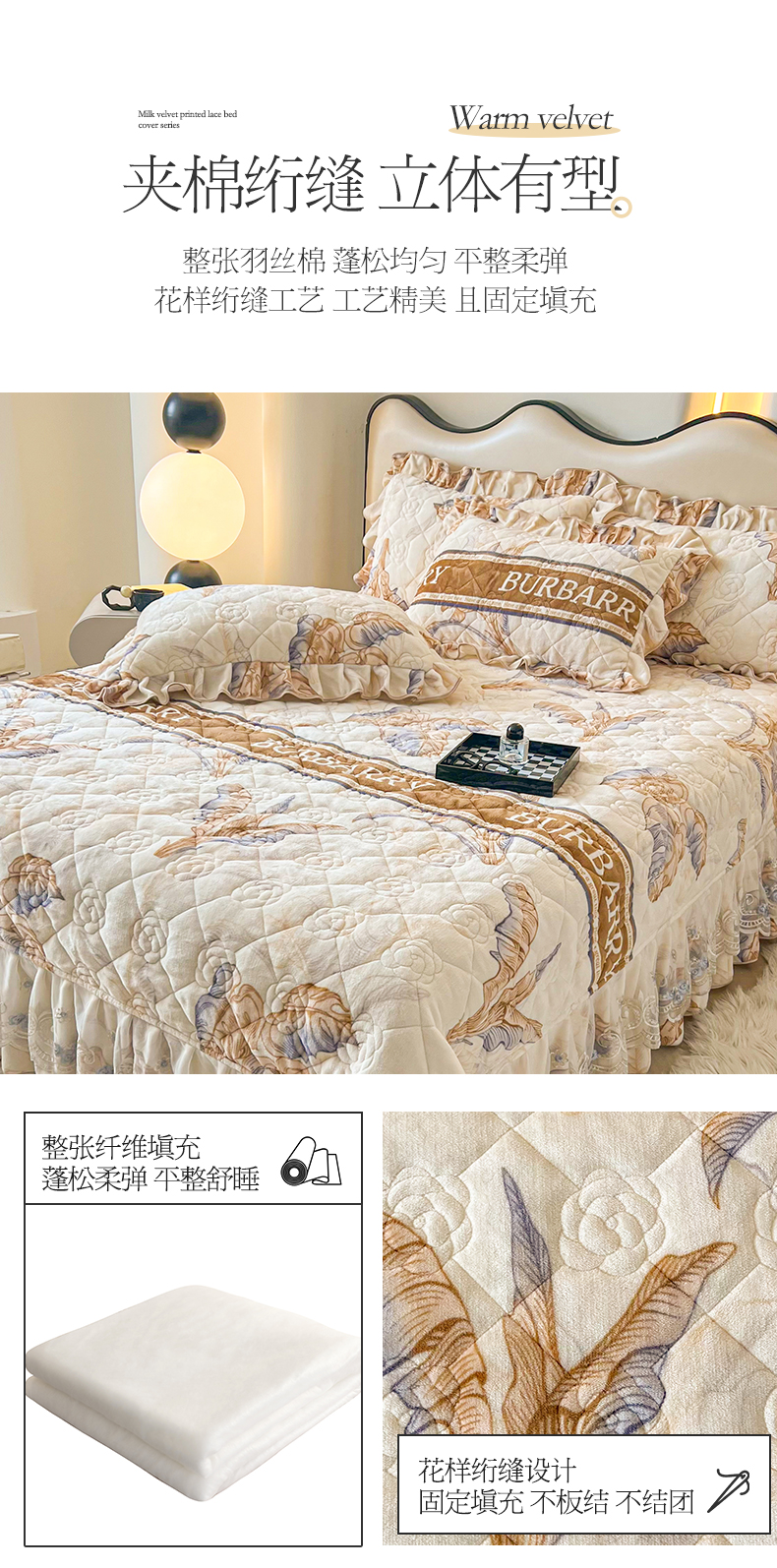 当前位置: 91家纺网 > 商品网购 > 床品套件 > 三件套 > 宜凡家纺 2024新款牛奶绒印花夹棉花边床盖三件套 锦绣花都