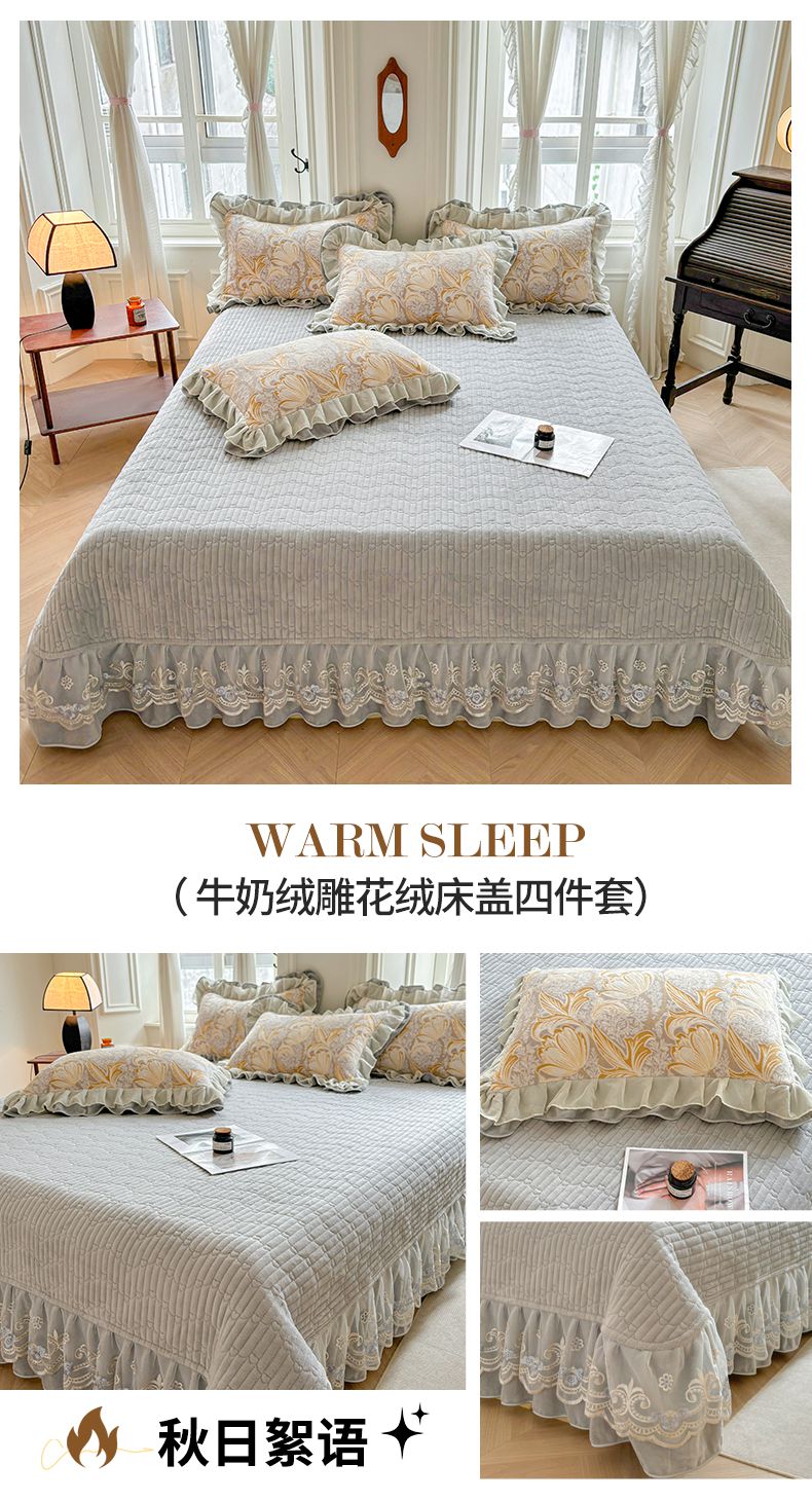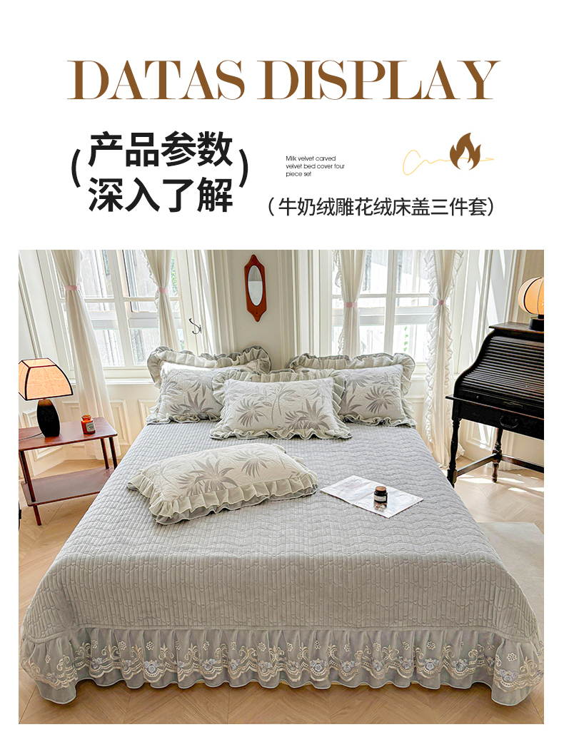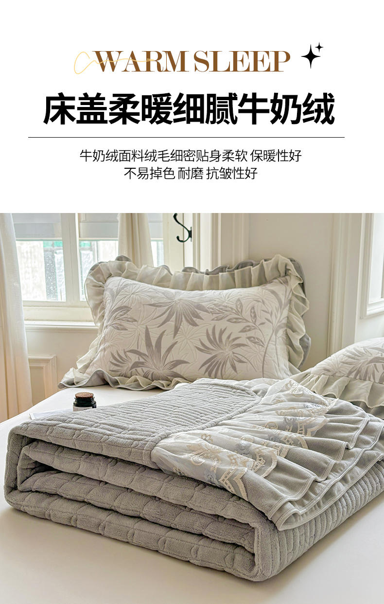 当前位置: 91家纺网 > 商品网购 > 床品套件 > 三件套 > 宜凡家纺 2024新款牛奶绒雕花绒床盖三件套 秋日絮语