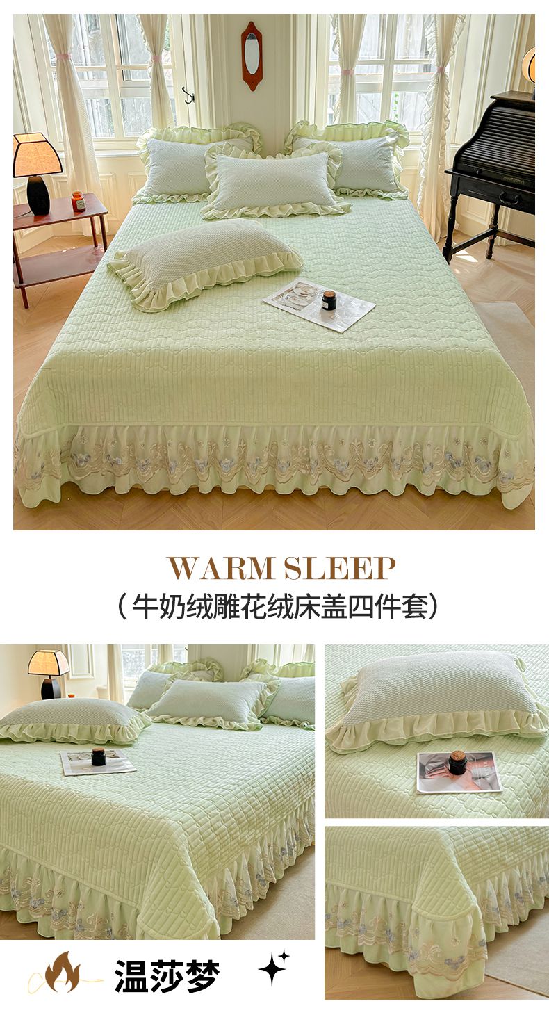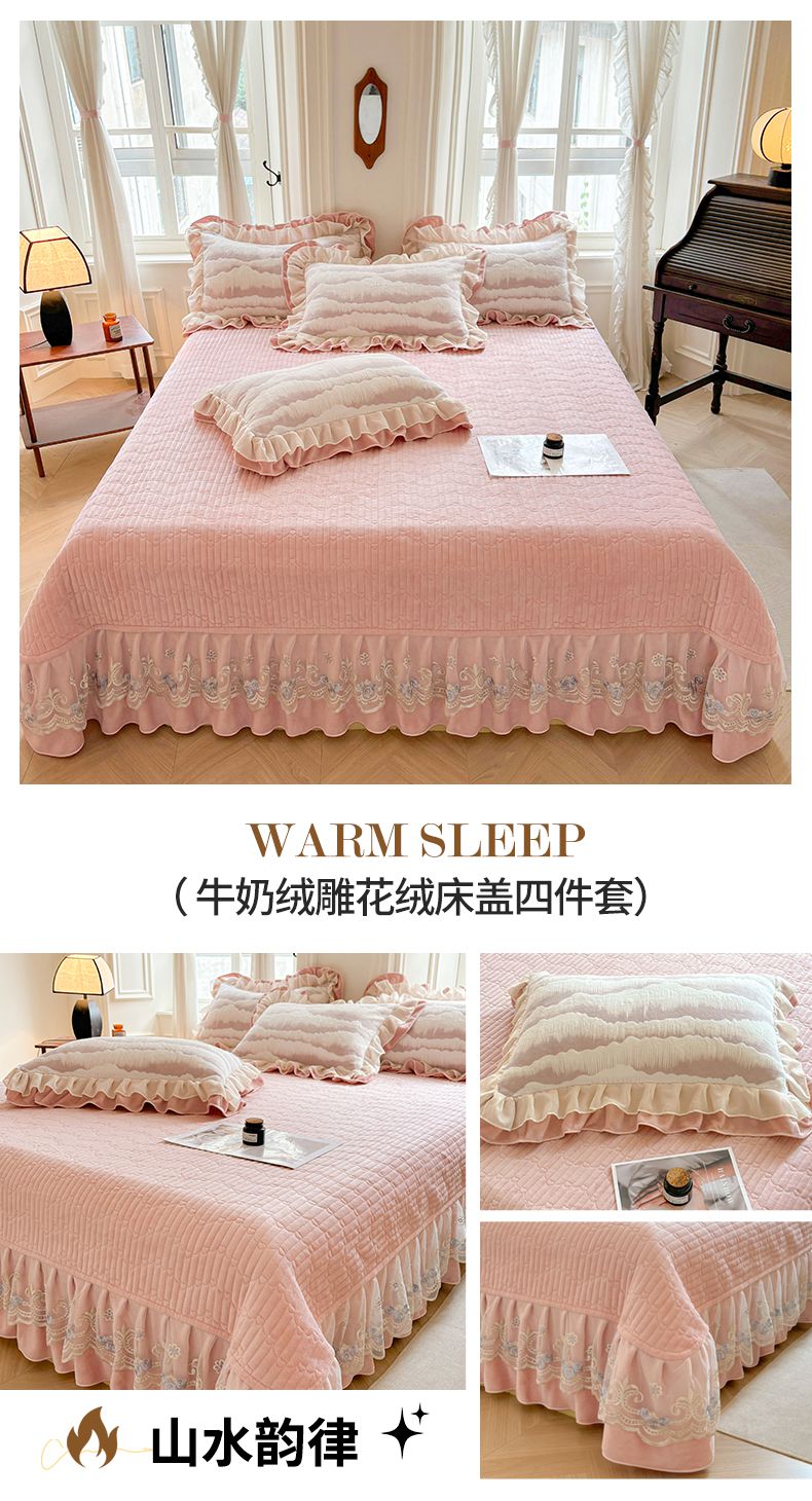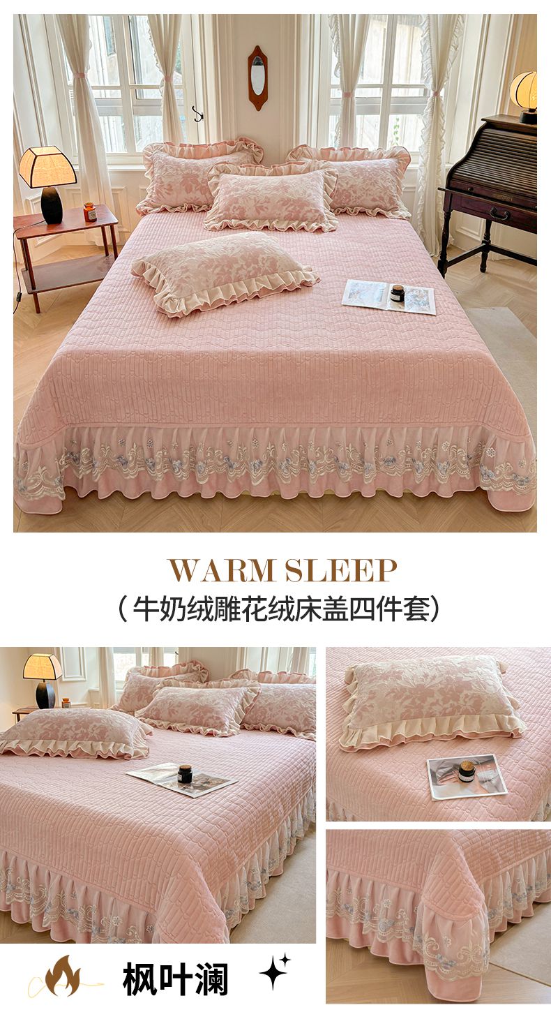 当前位置: 91家纺网 > 商品网购 > 床品套件 > 三件套 > 宜凡家纺 2024新款牛奶绒雕花绒床盖三件套 秋日絮语