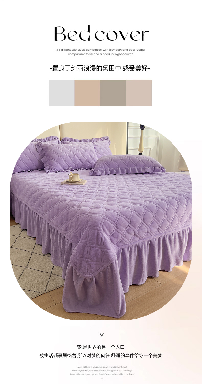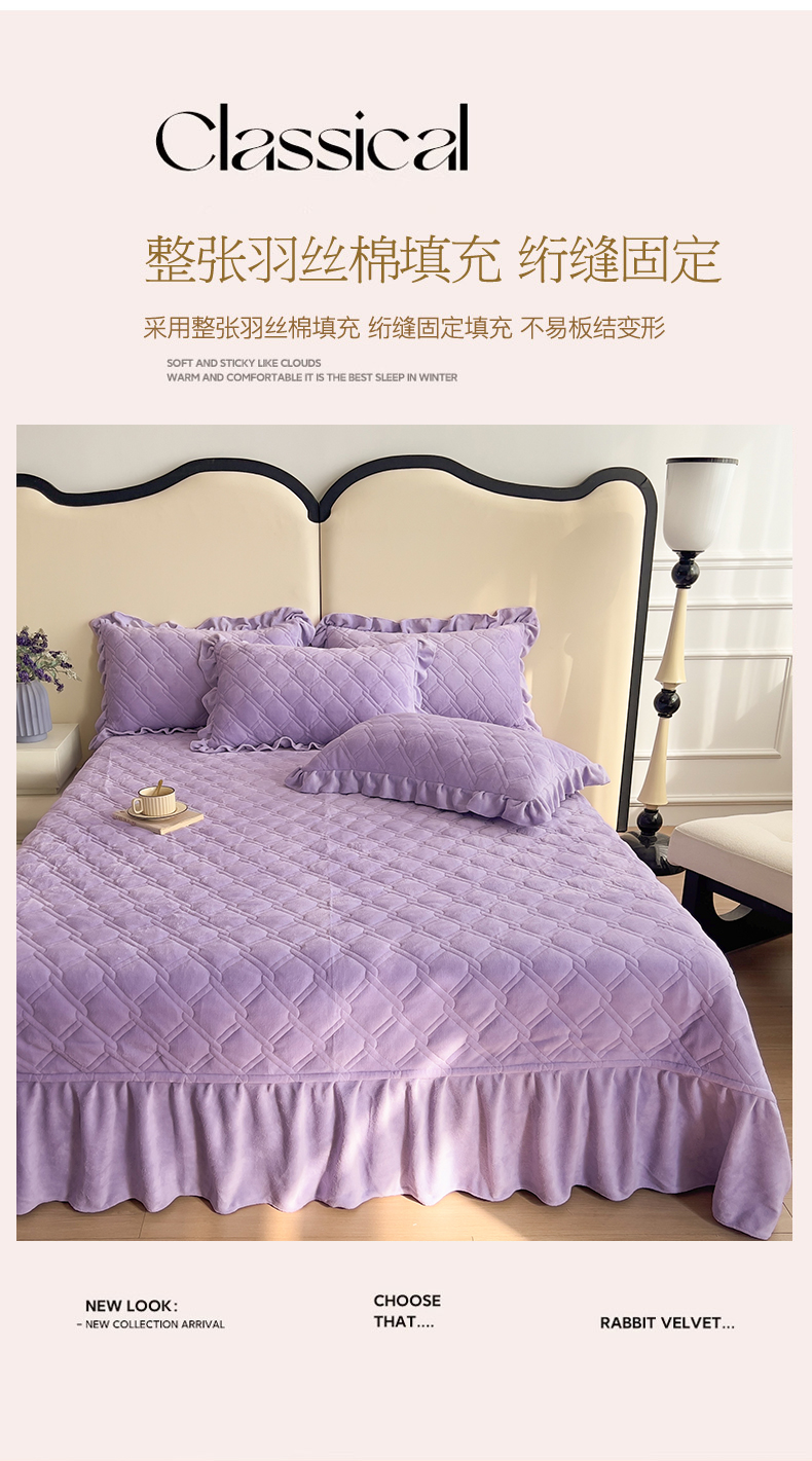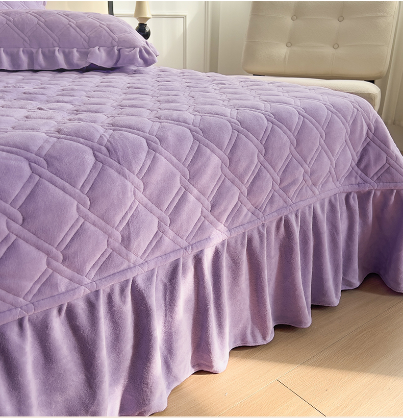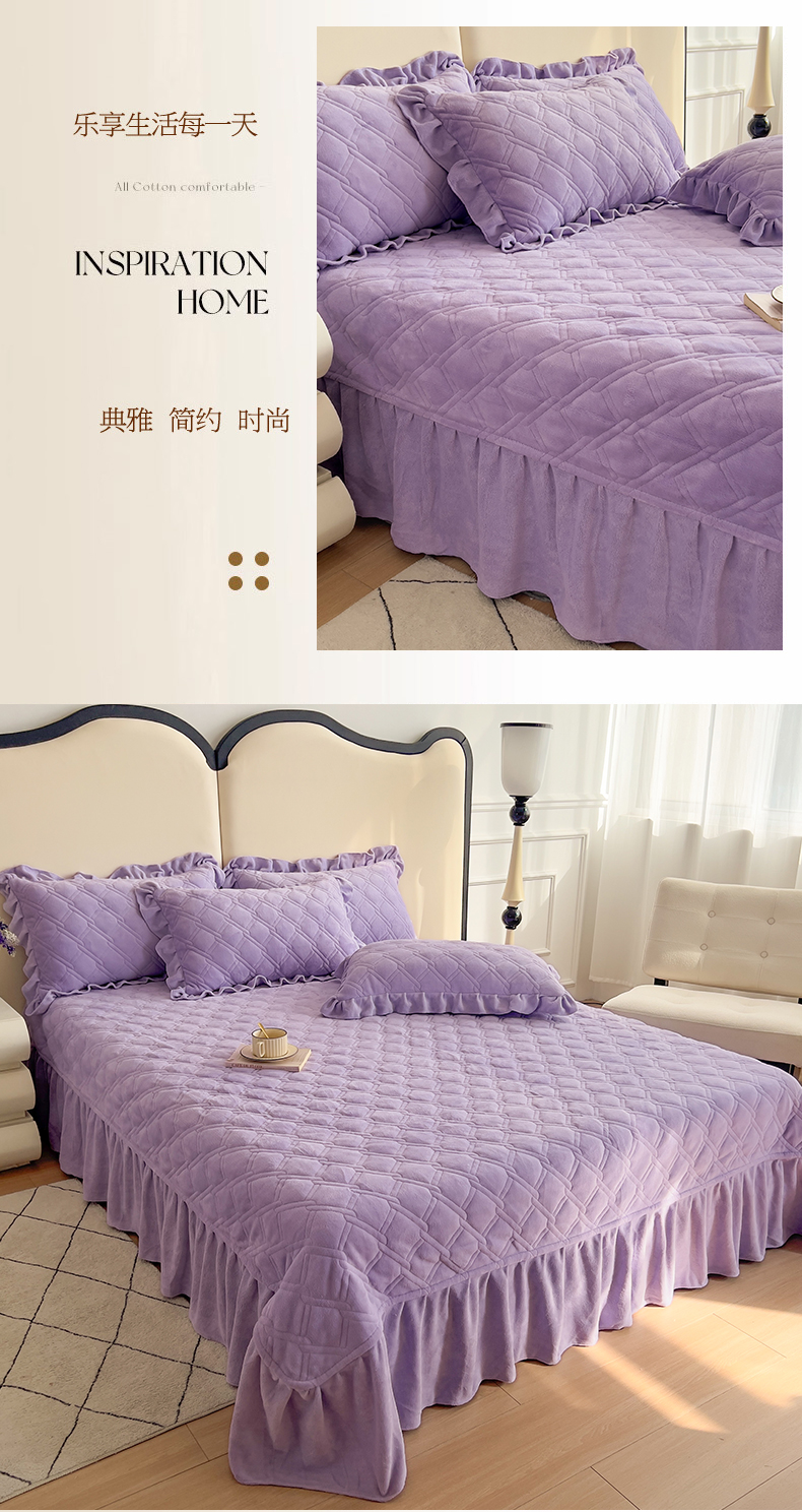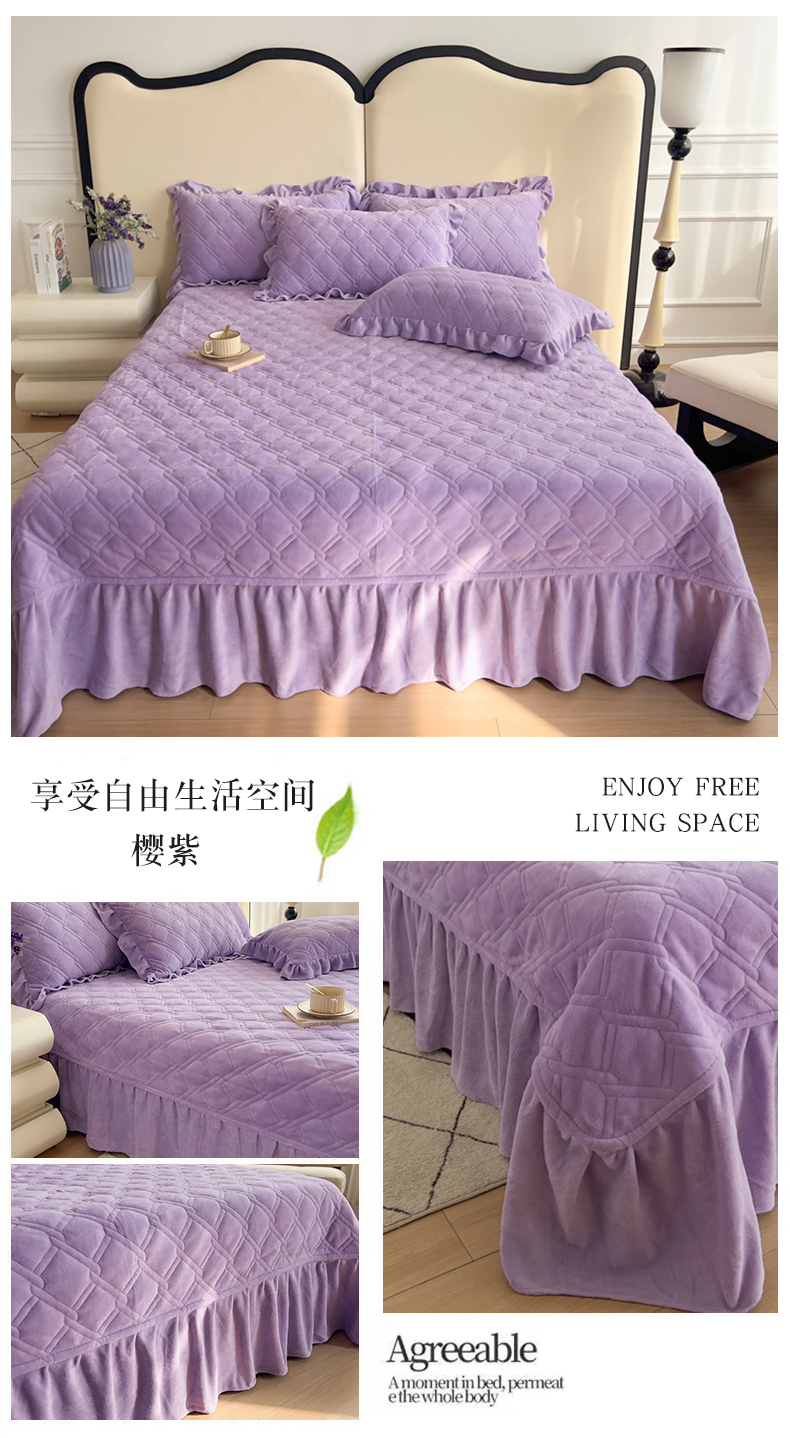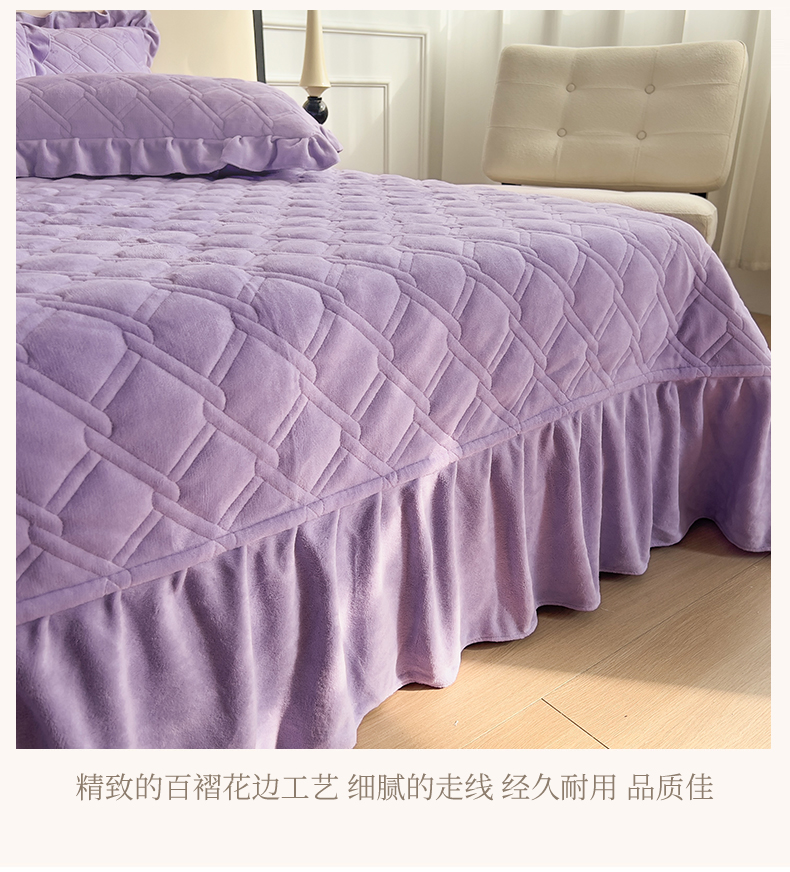 商品名称:十个点家纺 2024新款牛奶绒夹棉床盖三件套-唯美系列 唯美-樱紫