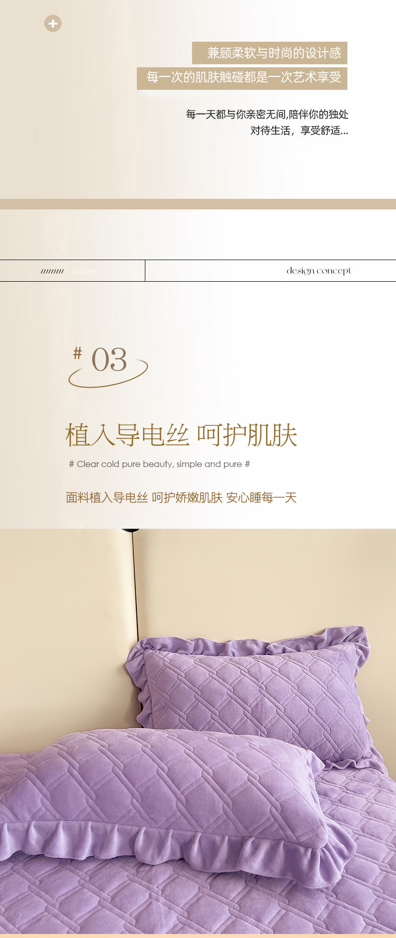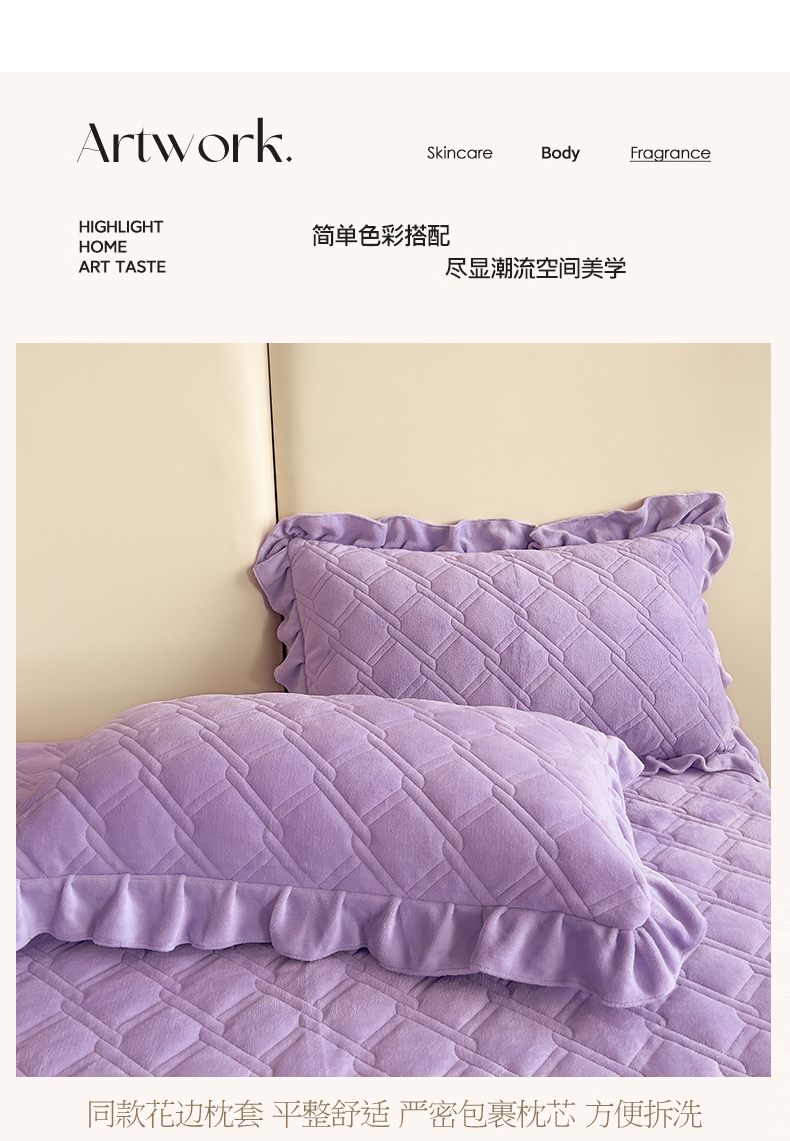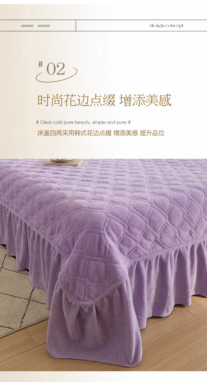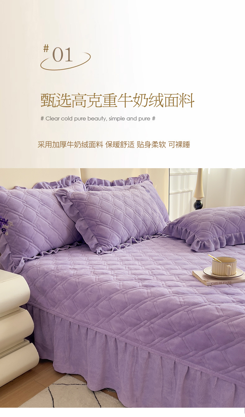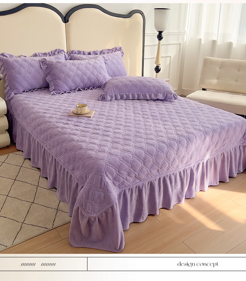 商品名称:十个点家纺 2024新款牛奶绒夹棉床盖三件套-唯美系列 唯美-樱紫