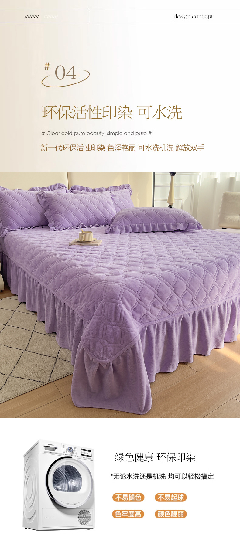 (总)十个点家纺 2025新款千鸟格磨毛绗缝夹棉纯色花边床裙三件套,经典白色,经典兰色,经典浅灰,经典浅驼,经典深灰,经典玉粉