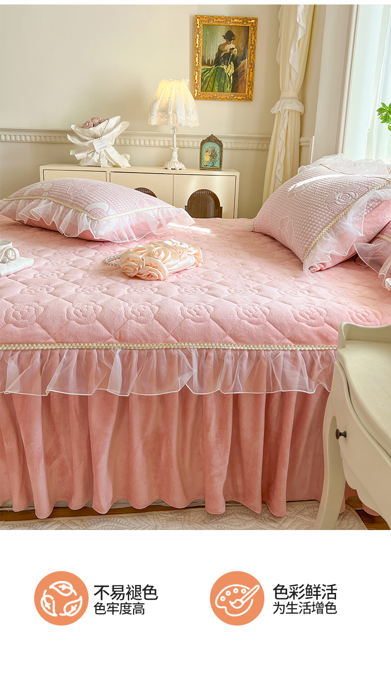 商品名称:网红馆(ck家纺) 2025新款雕花绒床裙三件套-浪漫印记 浪漫印记-嫩粉