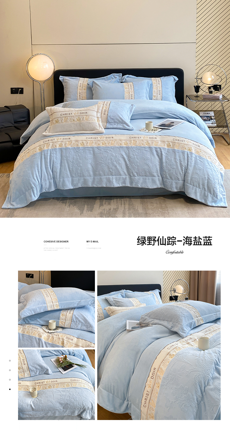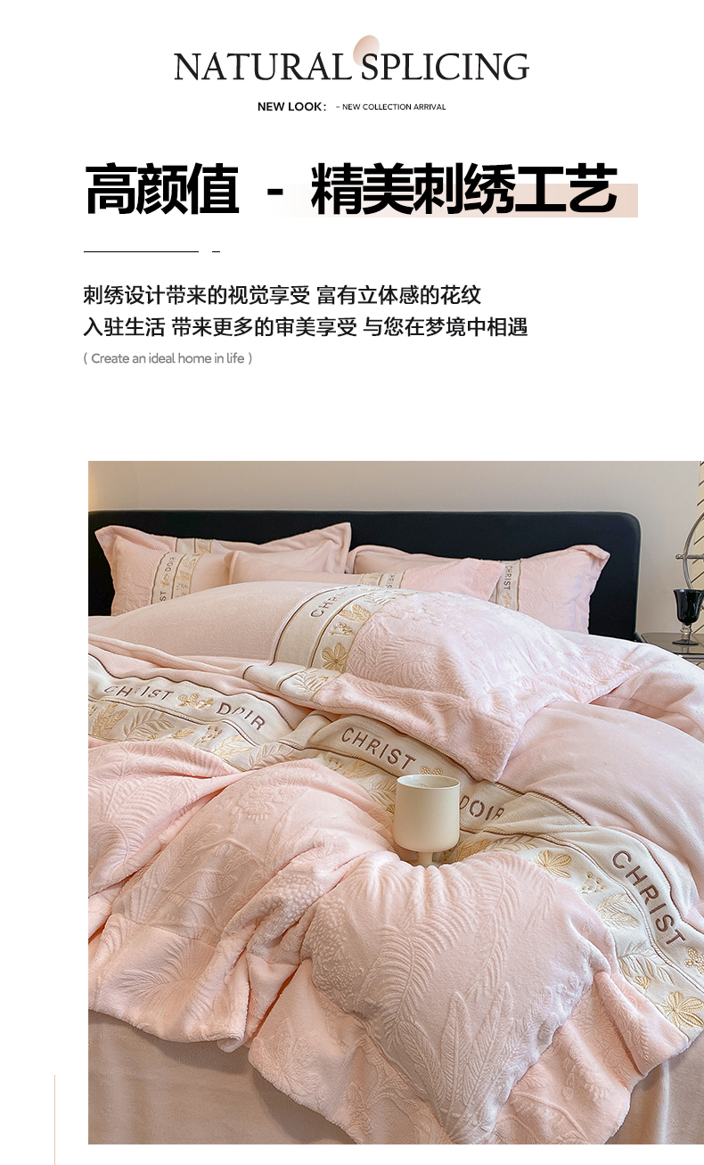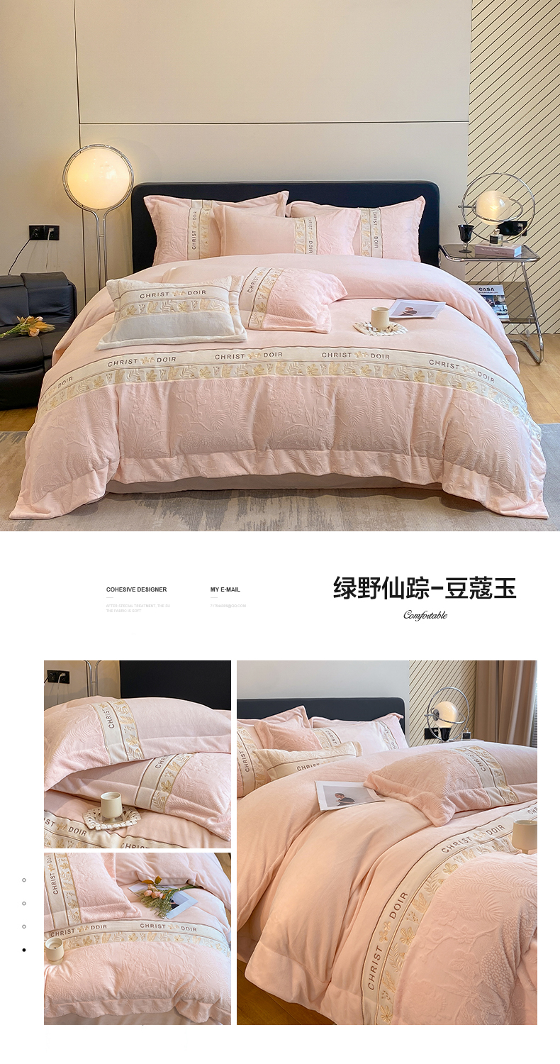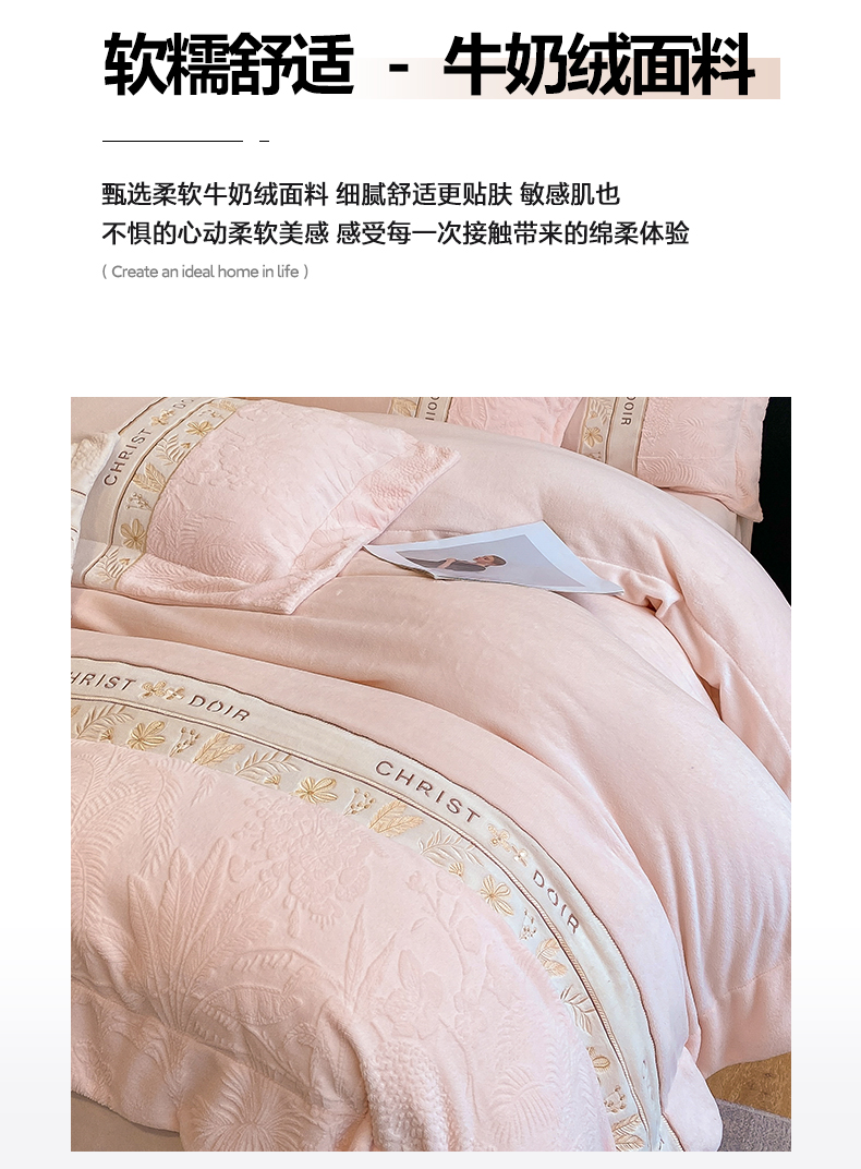 祺瑞佳家纺 2024新款A类母婴级高克重全消光雕花烂花牛奶绒四件套刺绣花保暖床单床笠款——绿野仙踪 绿野仙踪-豆蔻玉