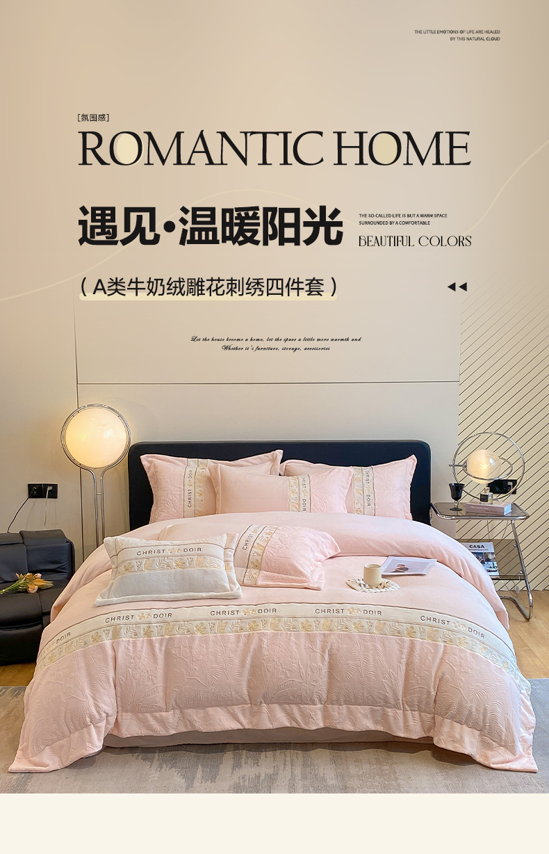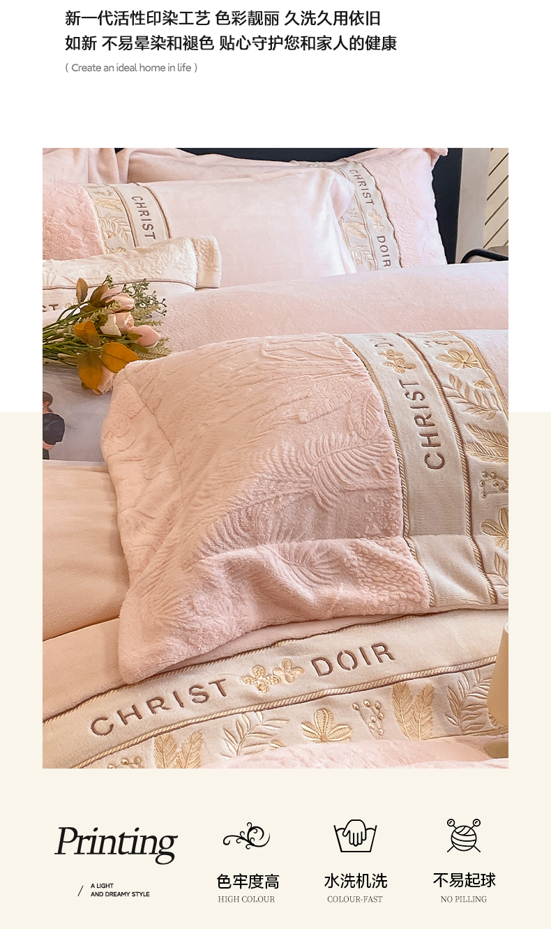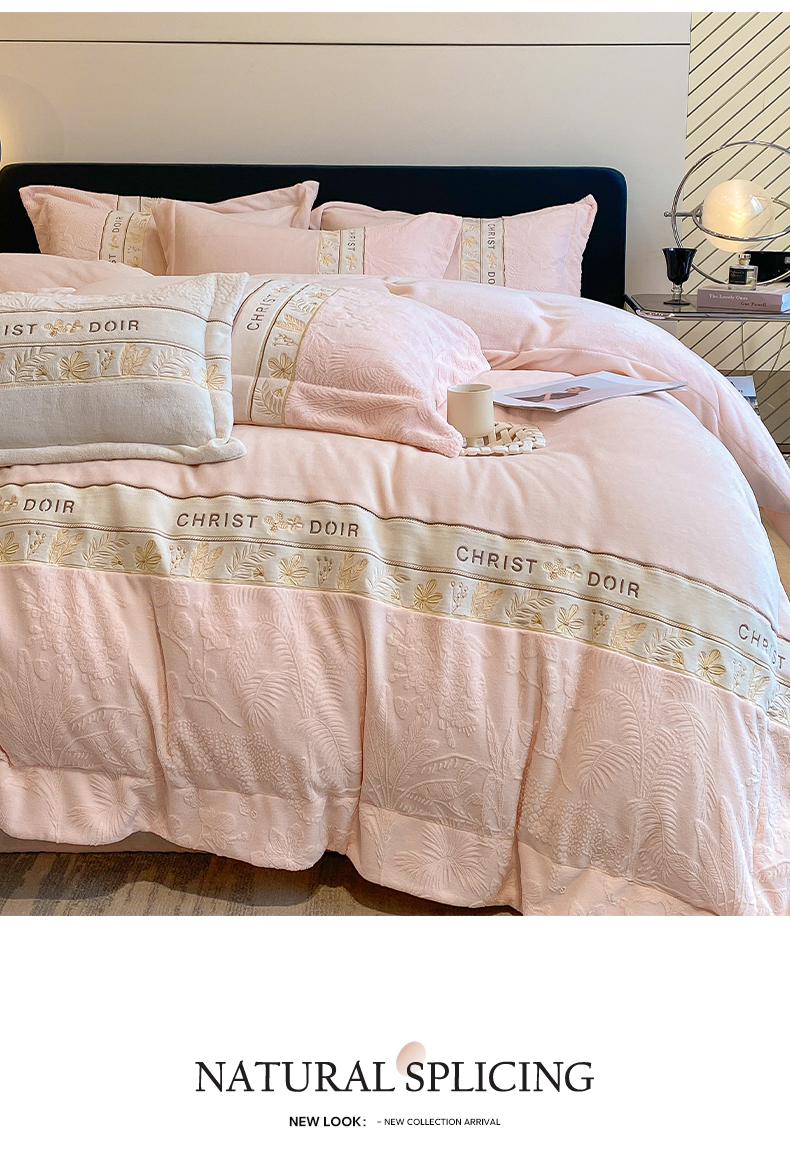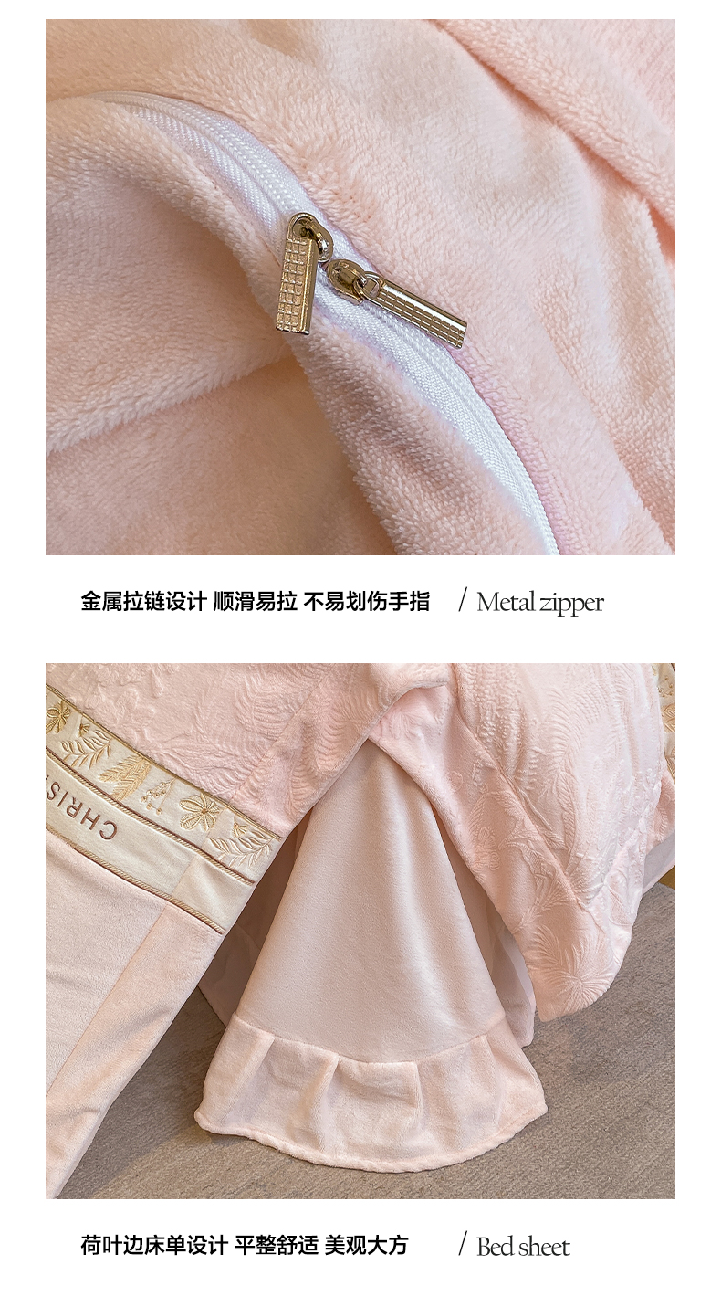 祺瑞佳家纺 2024新款A类母婴级高克重全消光雕花烂花牛奶绒四件套刺绣花保暖床单床笠款——绿野仙踪 绿野仙踪-豆蔻玉
