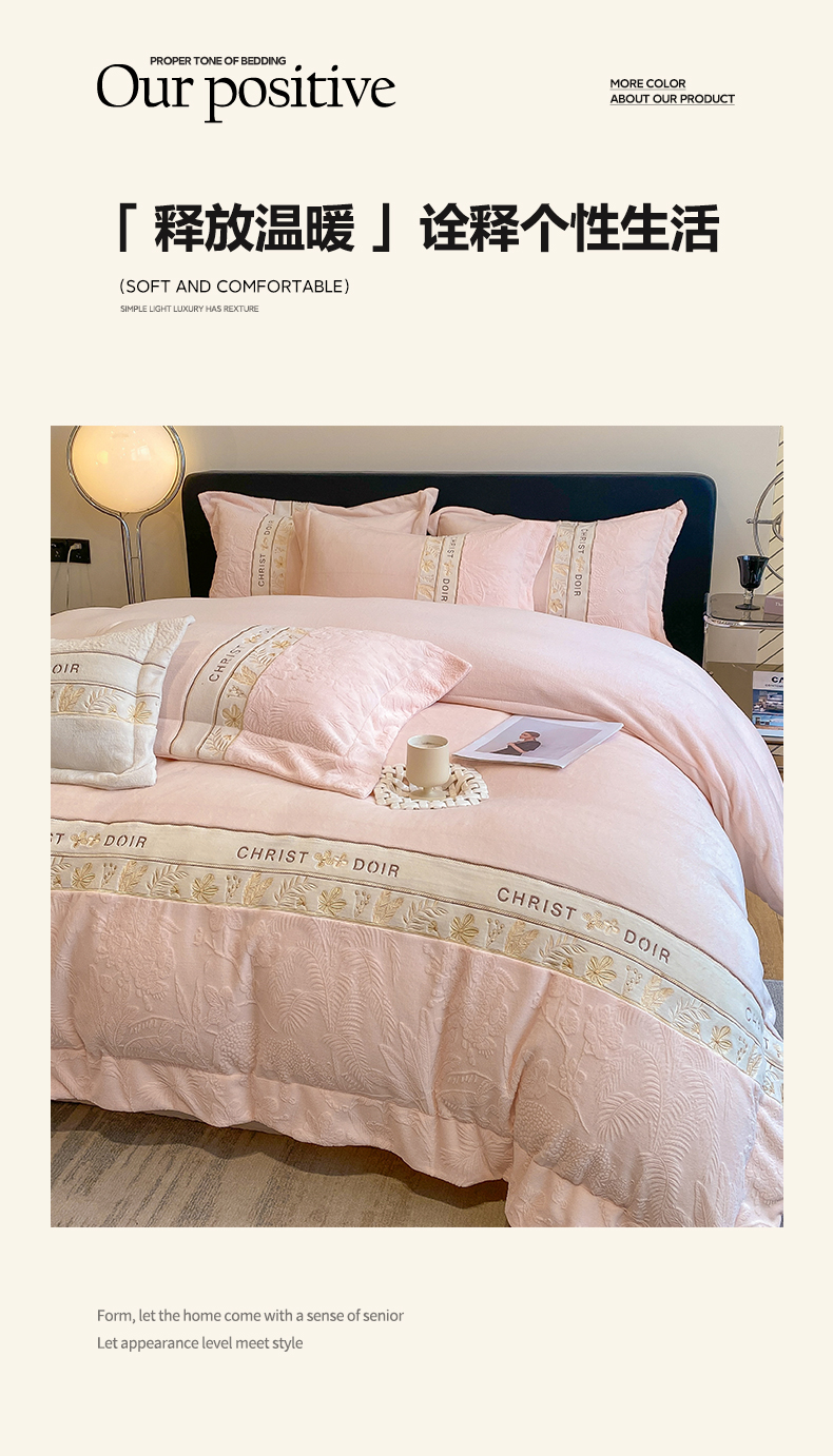(总)祺瑞佳家纺 2025新款侘寂风100%棉加厚磨毛四件套色织提花床单床笠(标准券后不得低于288元,大号券后不得低于308元),澹晖,青盈,杏粉