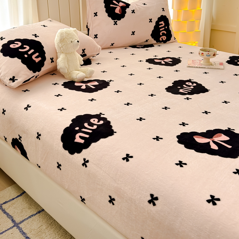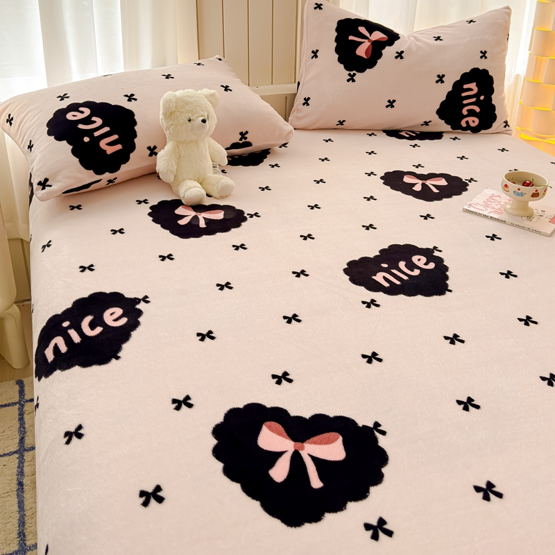 金丝鸟家纺 2024新款200g牛奶绒单床笠系列 爱心蝴蝶结
