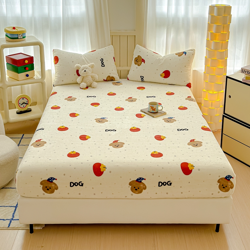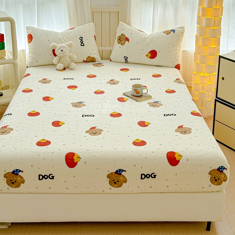 金丝鸟家纺 2024新款200g牛奶绒单床笠系列 西红柿小狗
