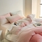 【天竺棉拼色四件套】 2025新款无印西川良品拼色天竺棉纯棉针织棉四件套纯色拼色新疆天竺棉裸睡全棉日式,白茶清欢,陌上春芽,香芋紫,紫粉+奶茶