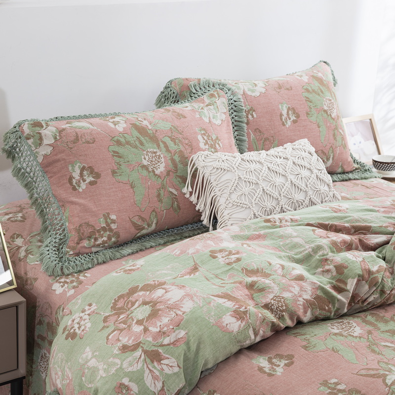 (总)鲁爱家纺供货 2025新款韩版色织提花四件套,花都-灰,花都-咖,兰亭序-豆沙,梅醉春秋-粉,梦蝶-浅咖,鸟语花香-浅咖,醉云间-绿