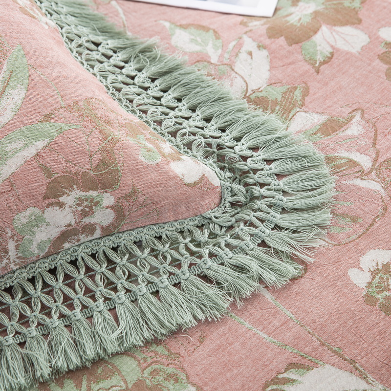 商品名称:鲁爱 2025新款全棉双层纱流苏花边四件套 寻芳-粉