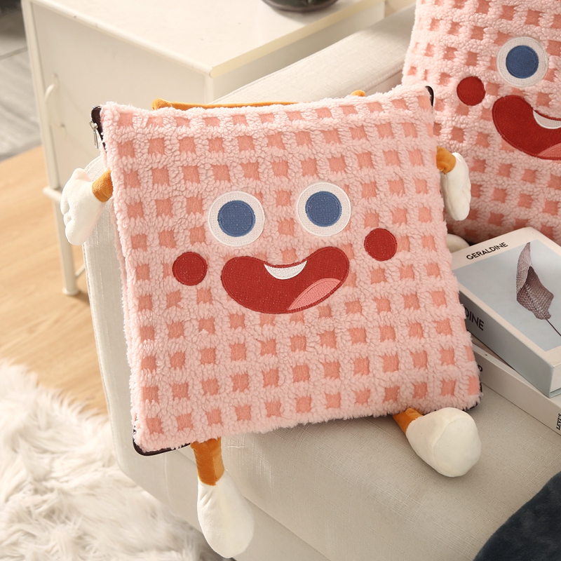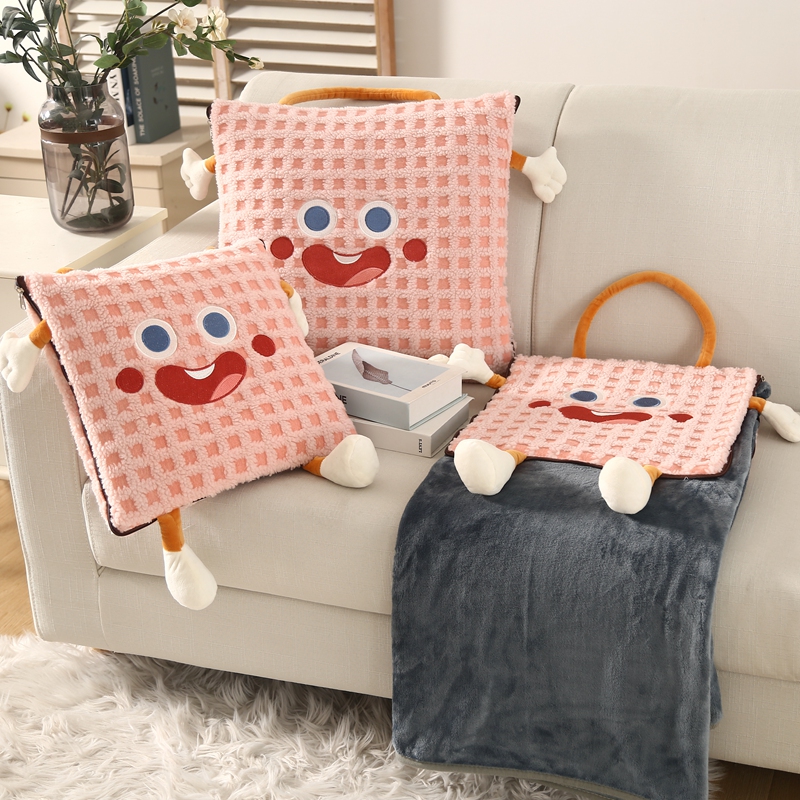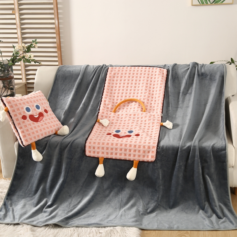 商品名称:素玖抱枕被 2024新款法莱绒羊羔绒提花抱枕毯-娜娜贝儿 娜娜贝儿-粉色