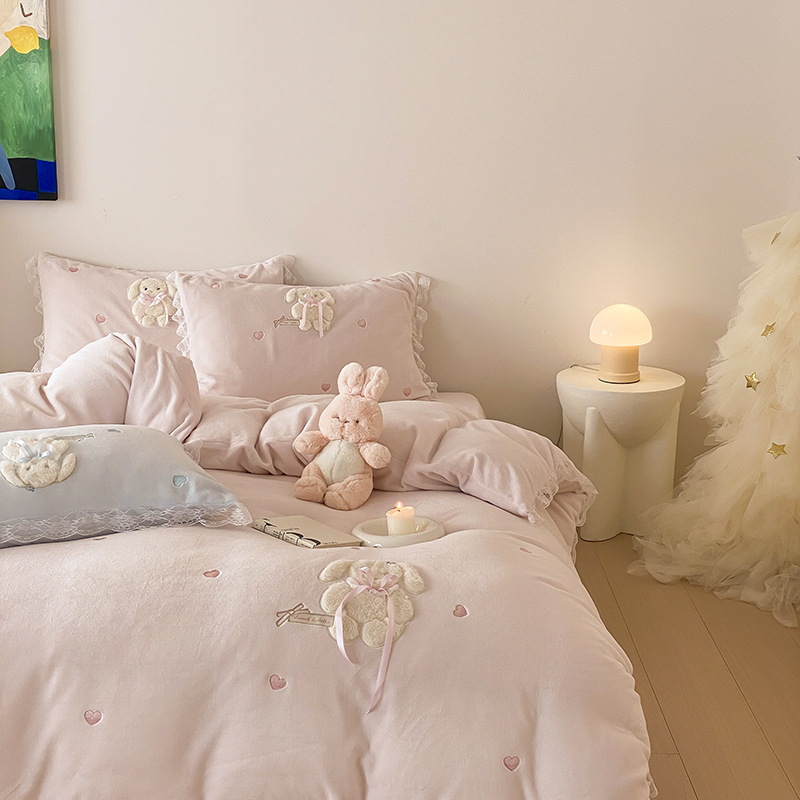 (总)MIU缪家居 2025新新款云锦绒牛奶绒四件套-赫妍,鎏金白,丝绒粉