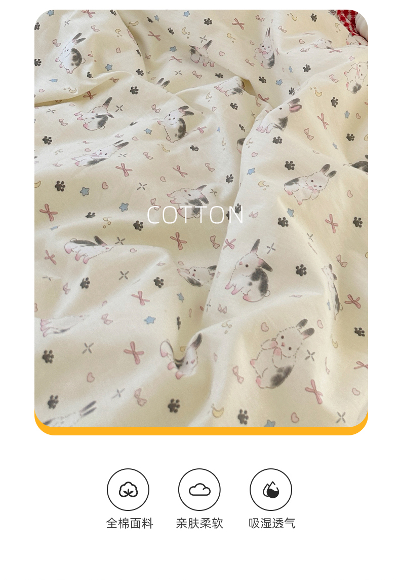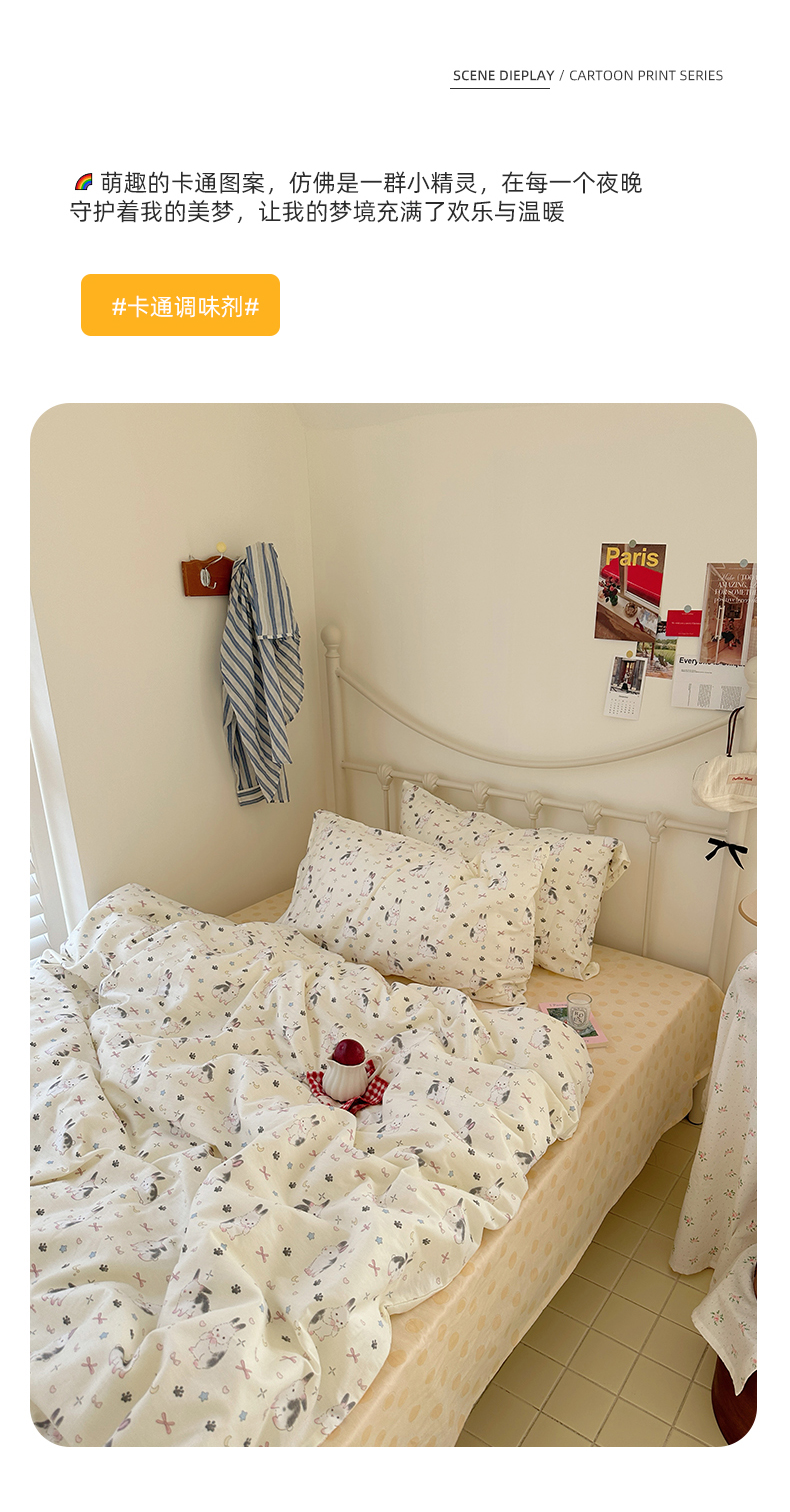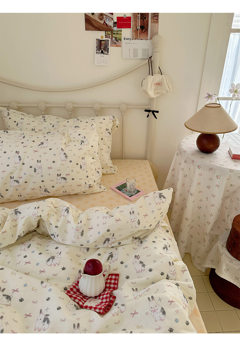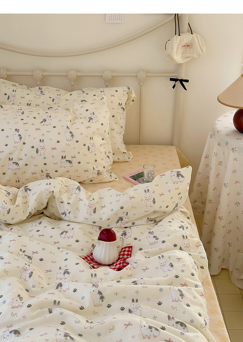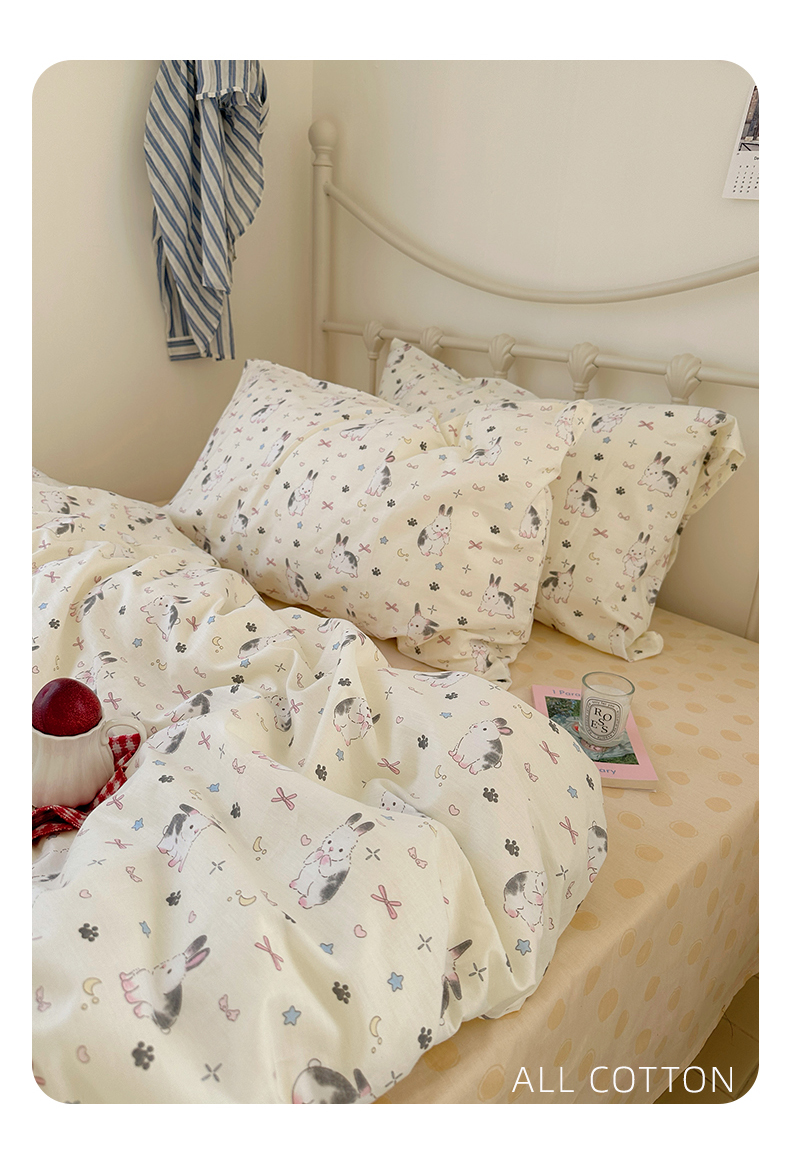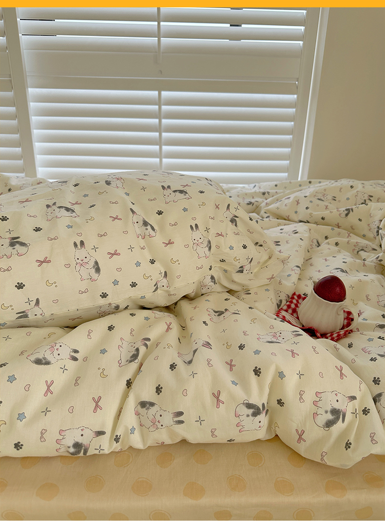 商品名称:尺素 2024新款全棉印花a类卡通儿童四件套纯棉花卉双人被套学生宿舍三件套 跳跳兔