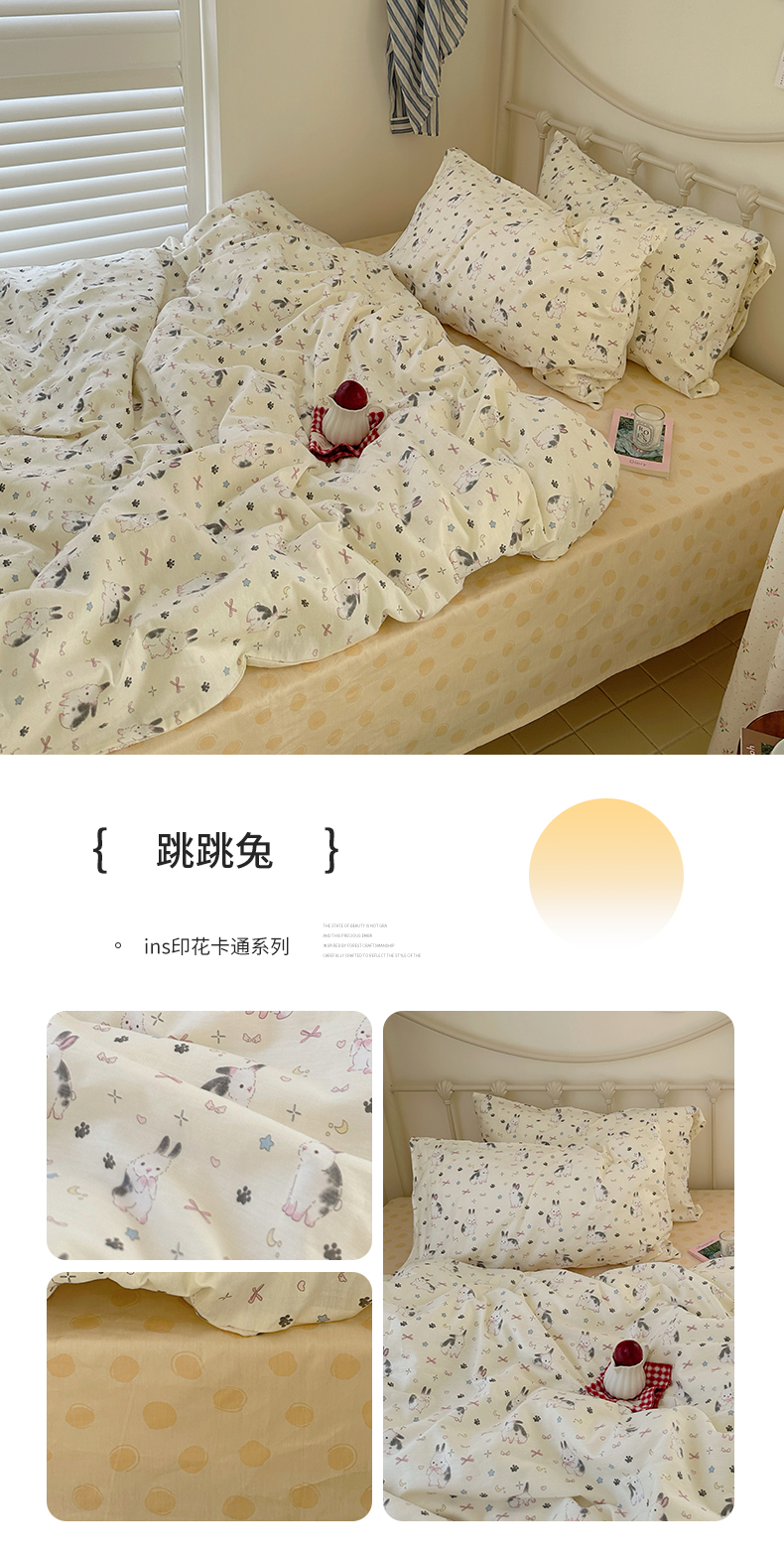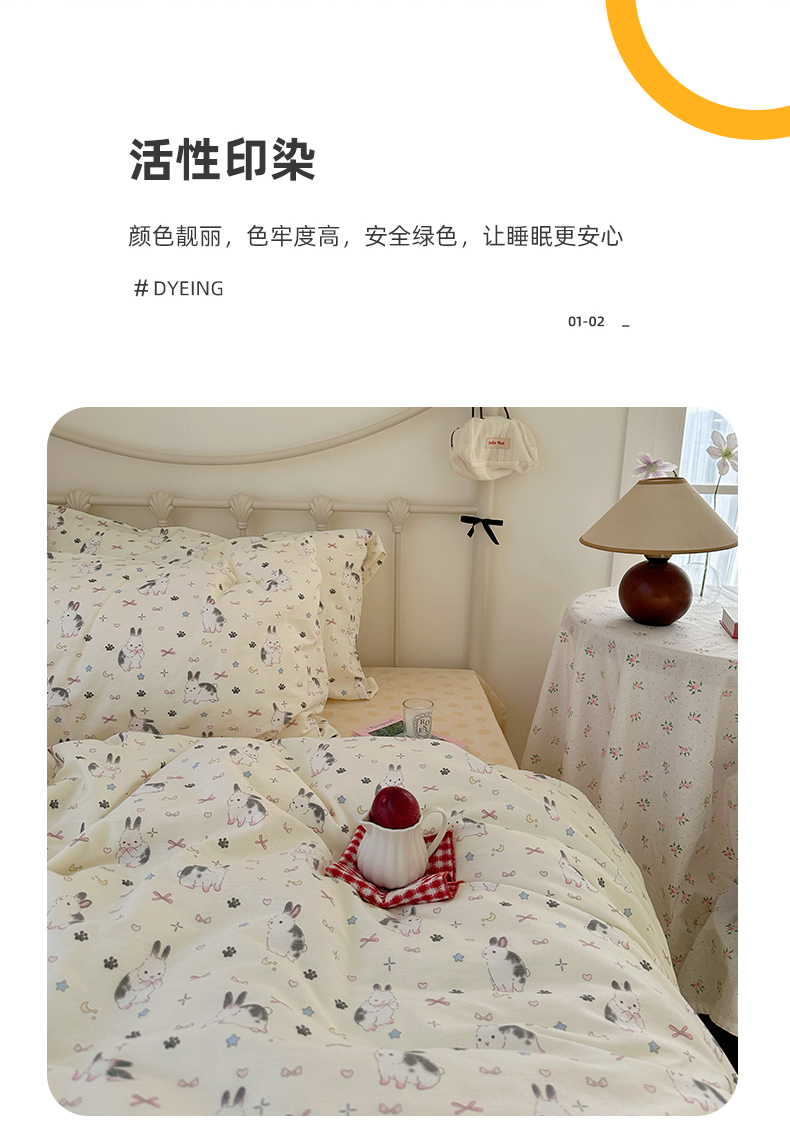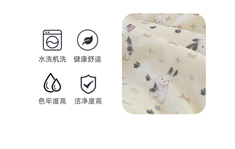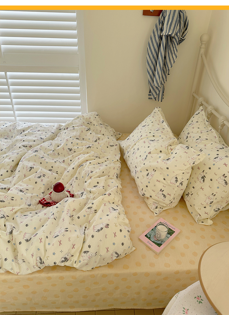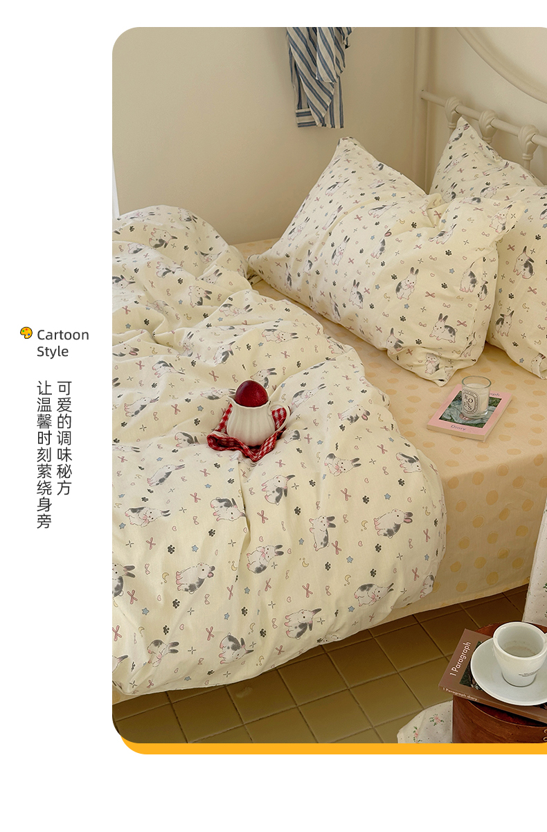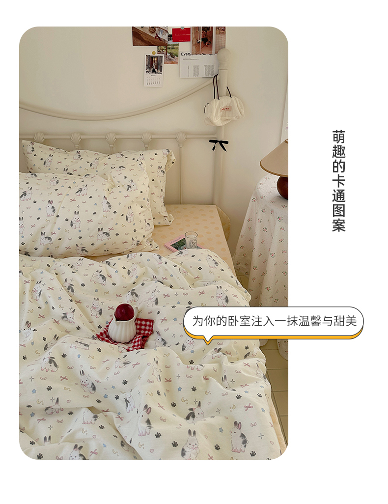 商品名称:尺素 2024新款全棉印花a类卡通儿童四件套纯棉花卉双人被套学生宿舍三件套 跳跳兔