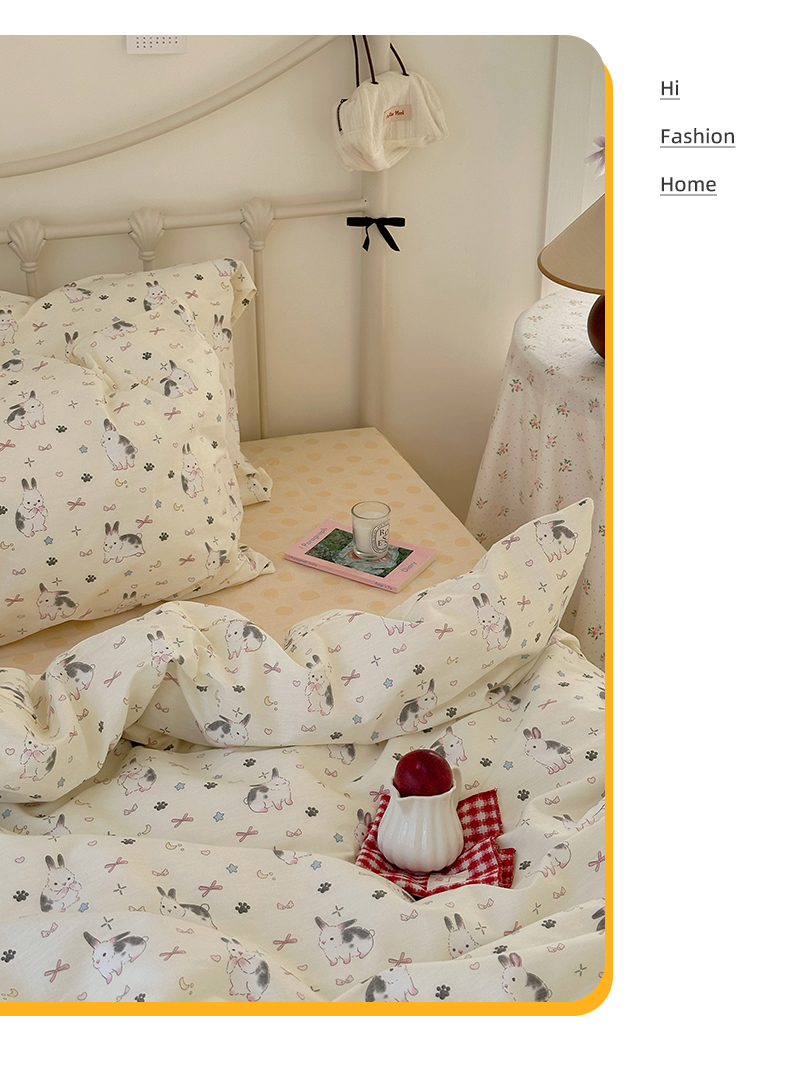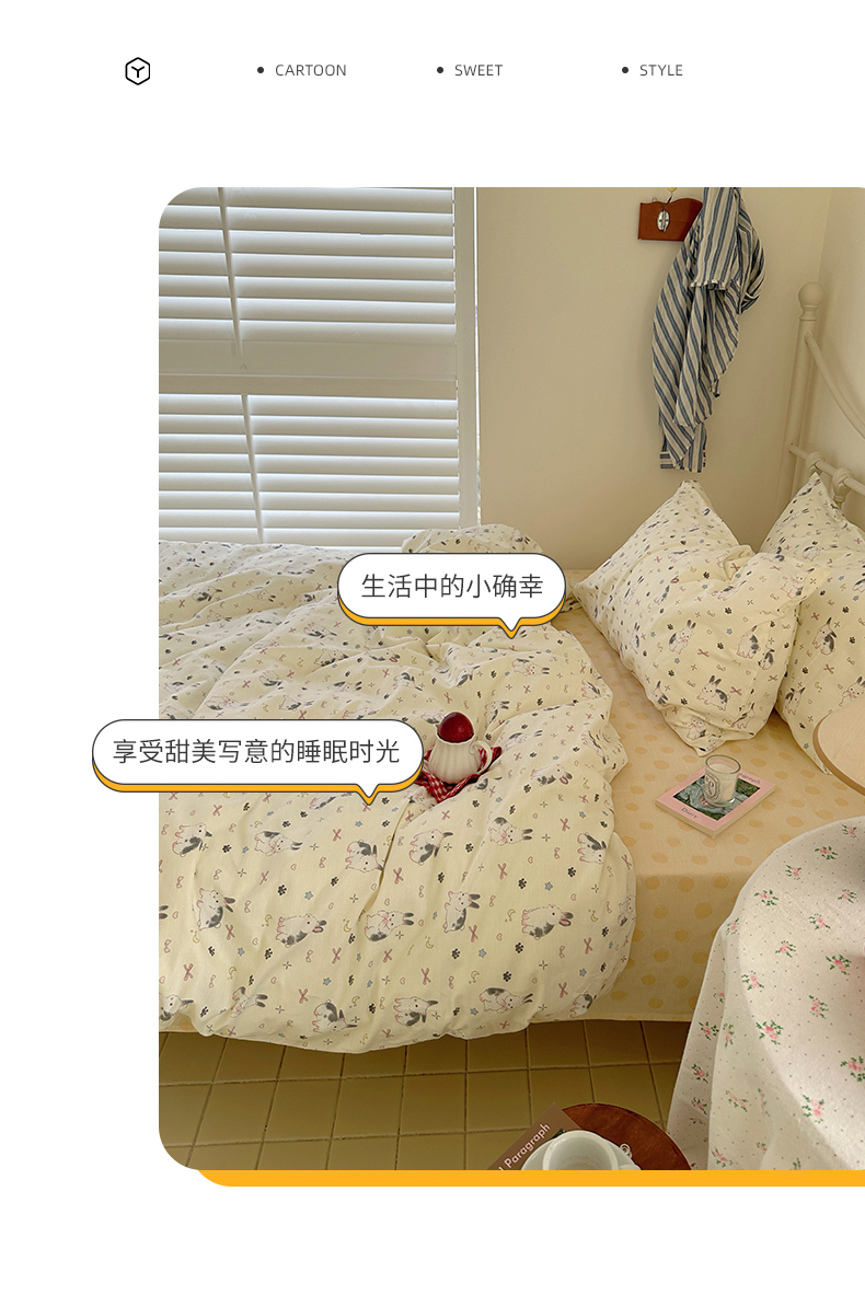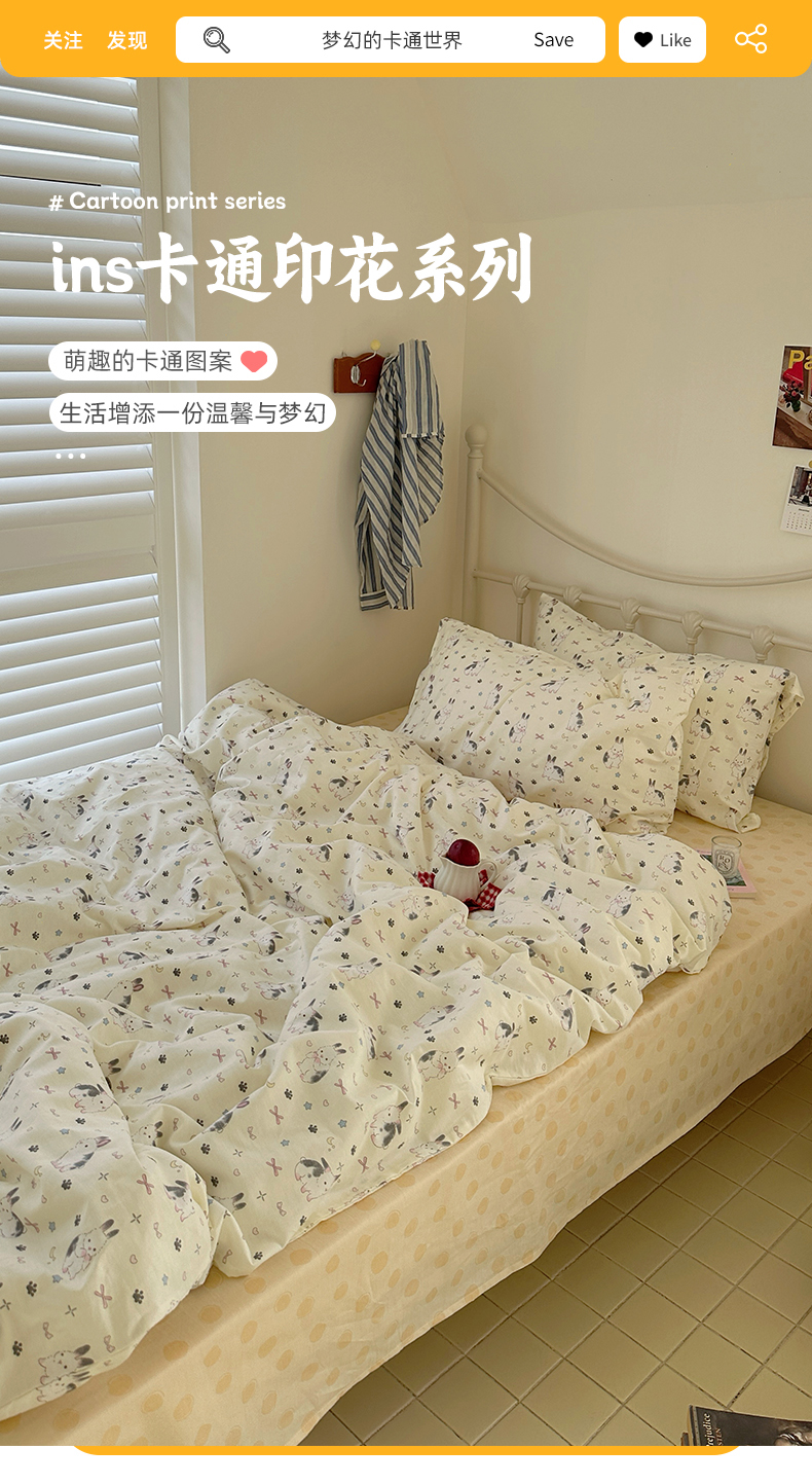 (总)尺素 全棉40支喷气13372韩国ins设计师四件套,花舞,篱落粉,篱落黄,落英,派对,童趣,涂鸦,小粉兔,雪地熊