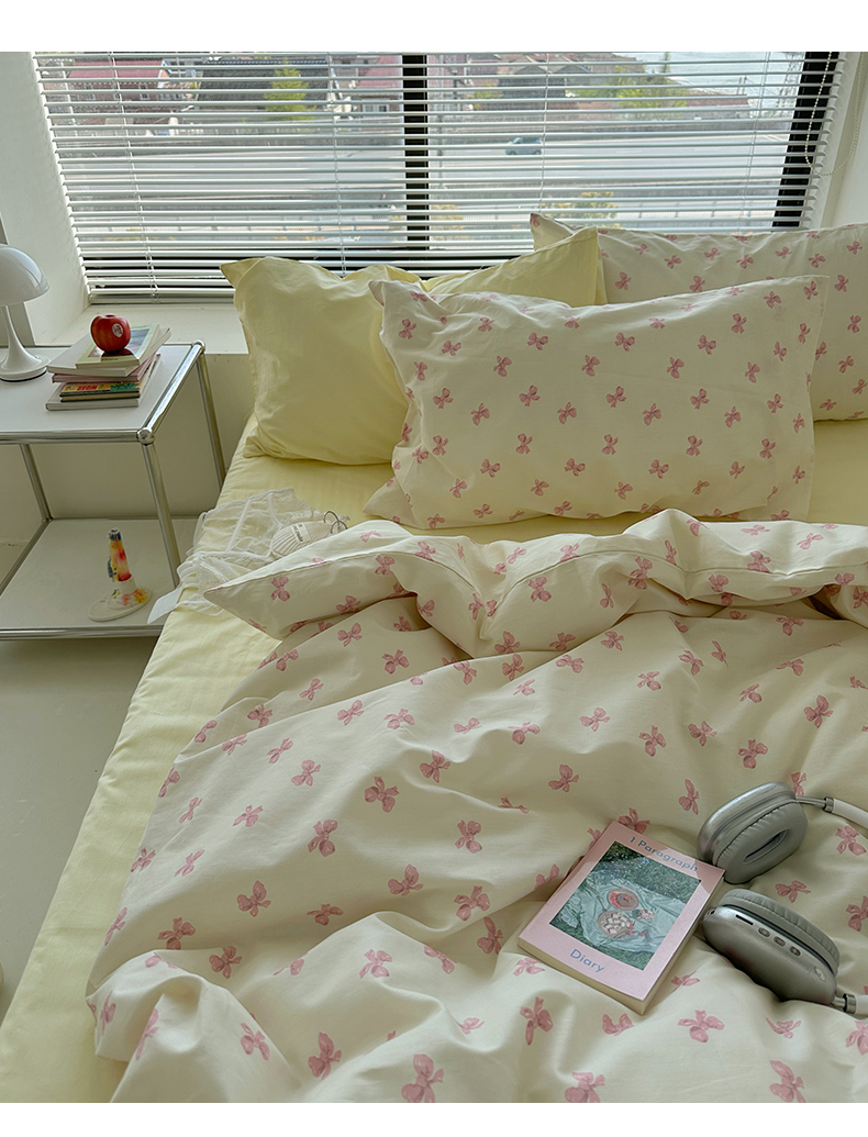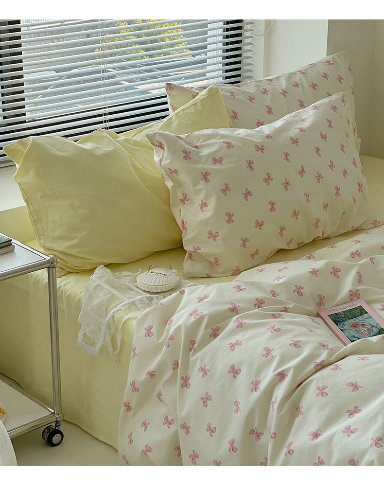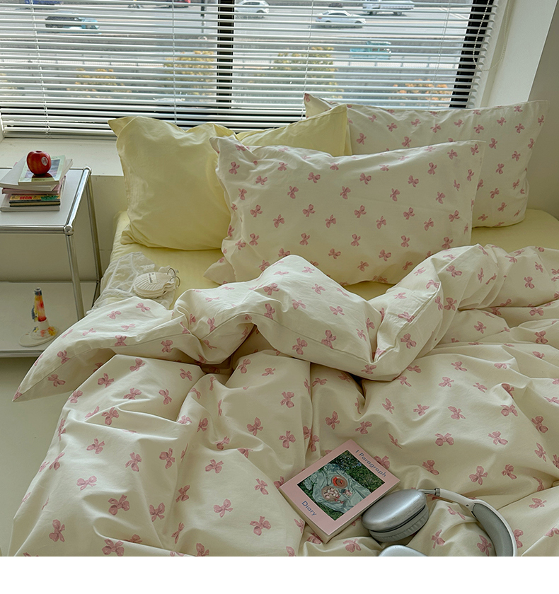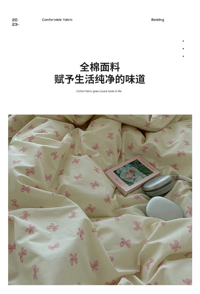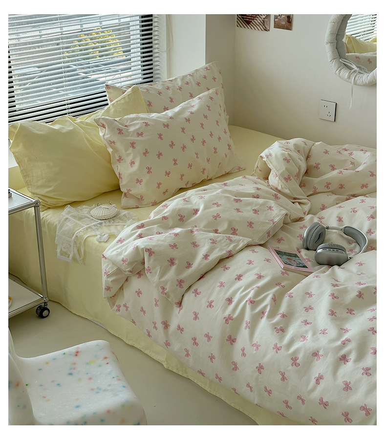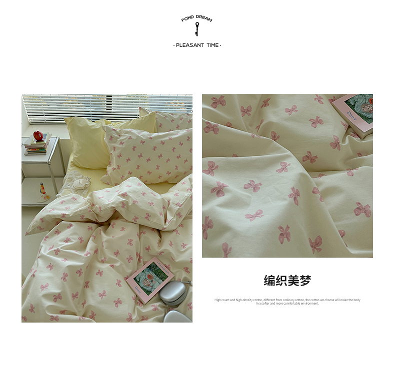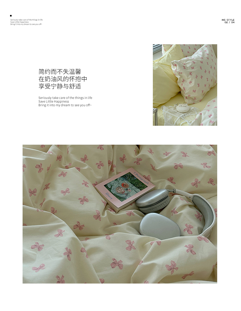 商品名称:尺素 2024韩国ins风少女粉被套纯棉卡通四件套小清新蝴蝶结被套240*250床单学生宿舍三件套 少女日记(浅黄)