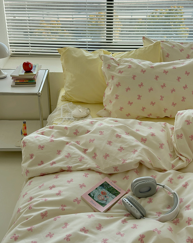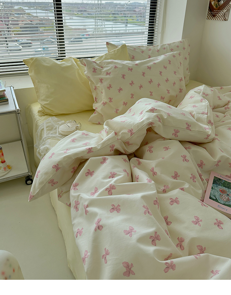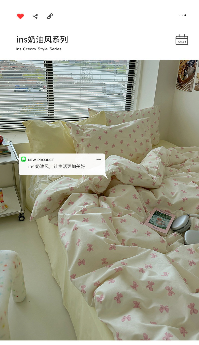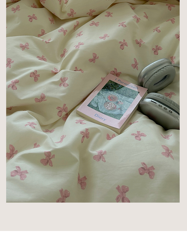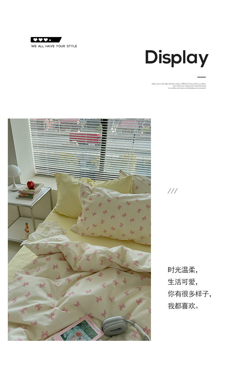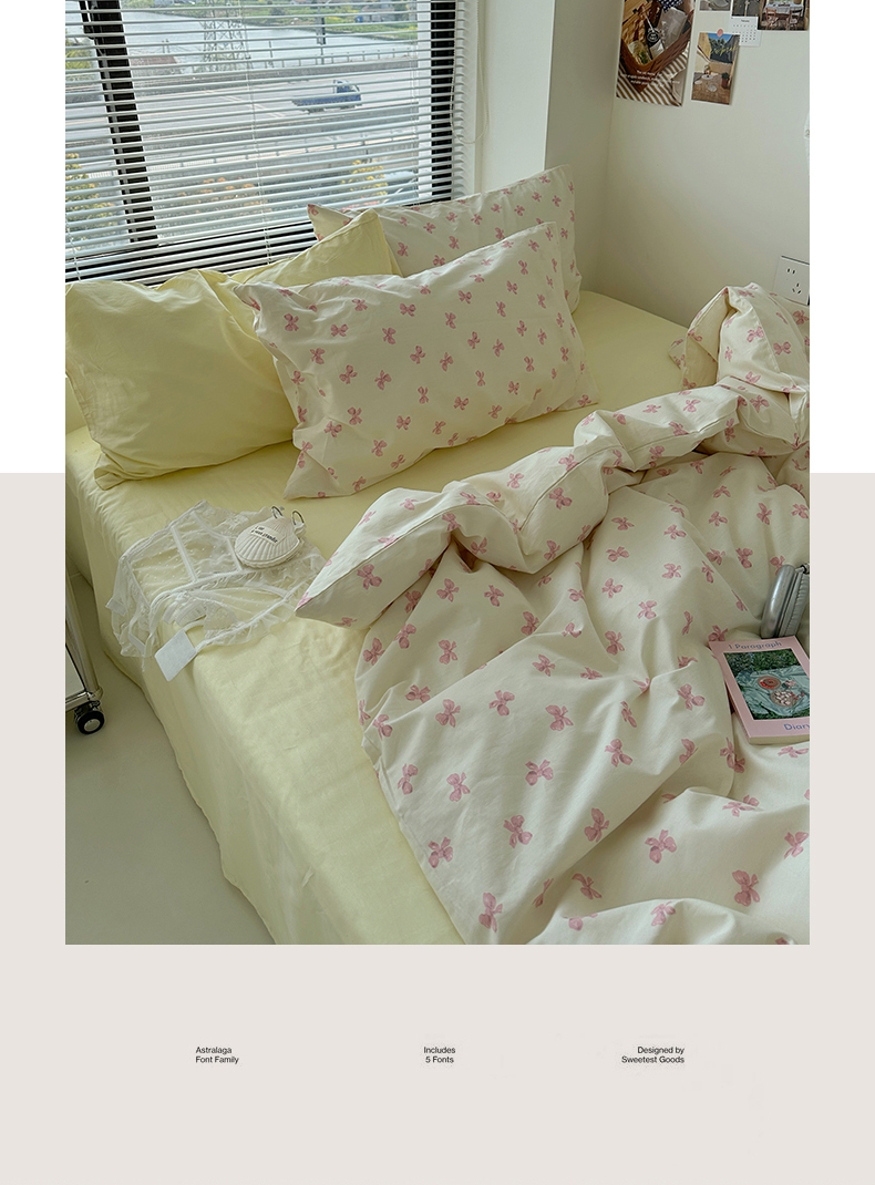 商品名称:尺素 2024韩国ins风少女粉被套纯棉卡通四件套小清新蝴蝶结被套240*250床单学生宿舍三件套 少女日记(浅黄)