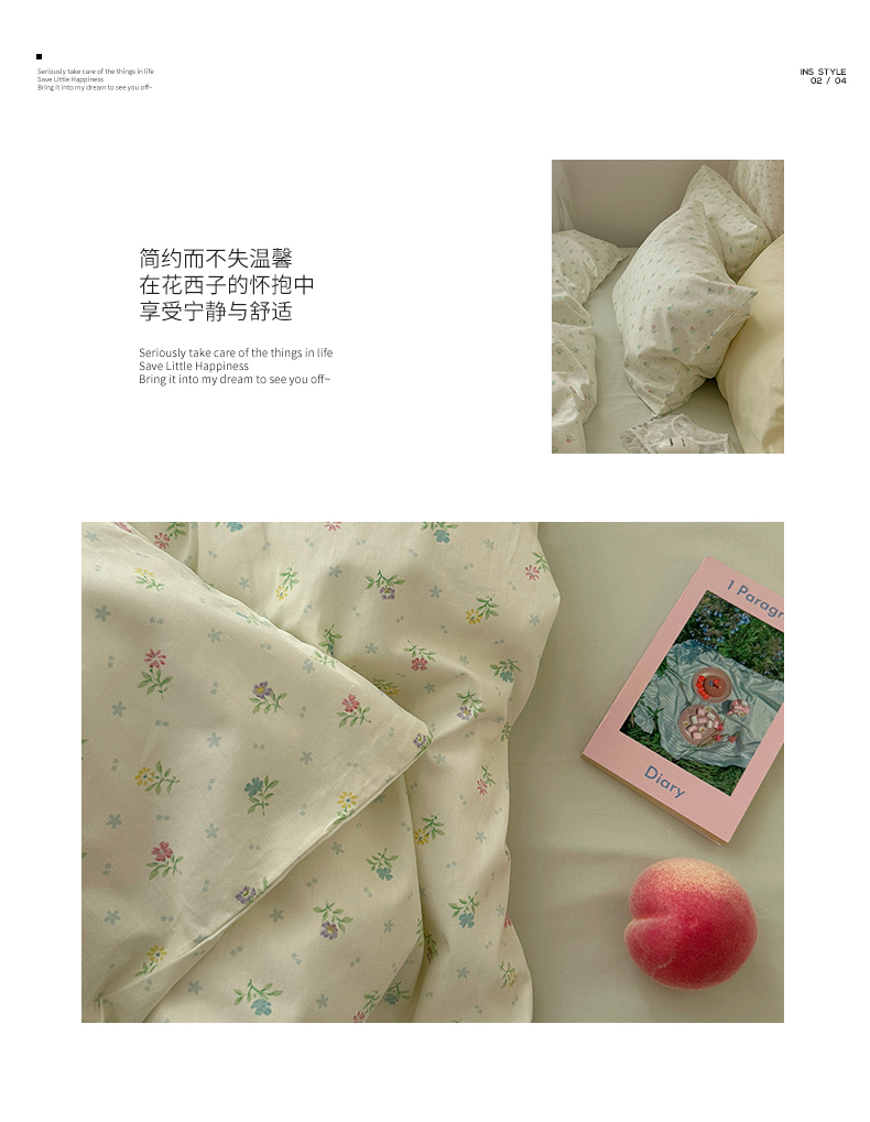 当前位置: 91家纺网 > 商品网购 > 床品套件 > 四件套 > 全棉普通四件套 > (总)韩国纯棉ins风小碎花田园风四件套花卉活性印花小清新被套纯色加大床单1.8床笠混搭风纯色印花枕套