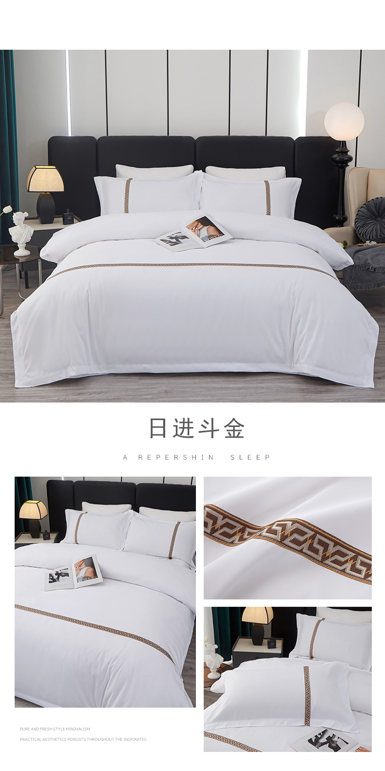 当前位置: 91家纺网 > 商品网购 > 床品套件 > 四件套 > 其它四件套 > (总)中乾酒店布草工厂店 2024新款加厚磨毛140克涤纶面料酒店舒适四件套