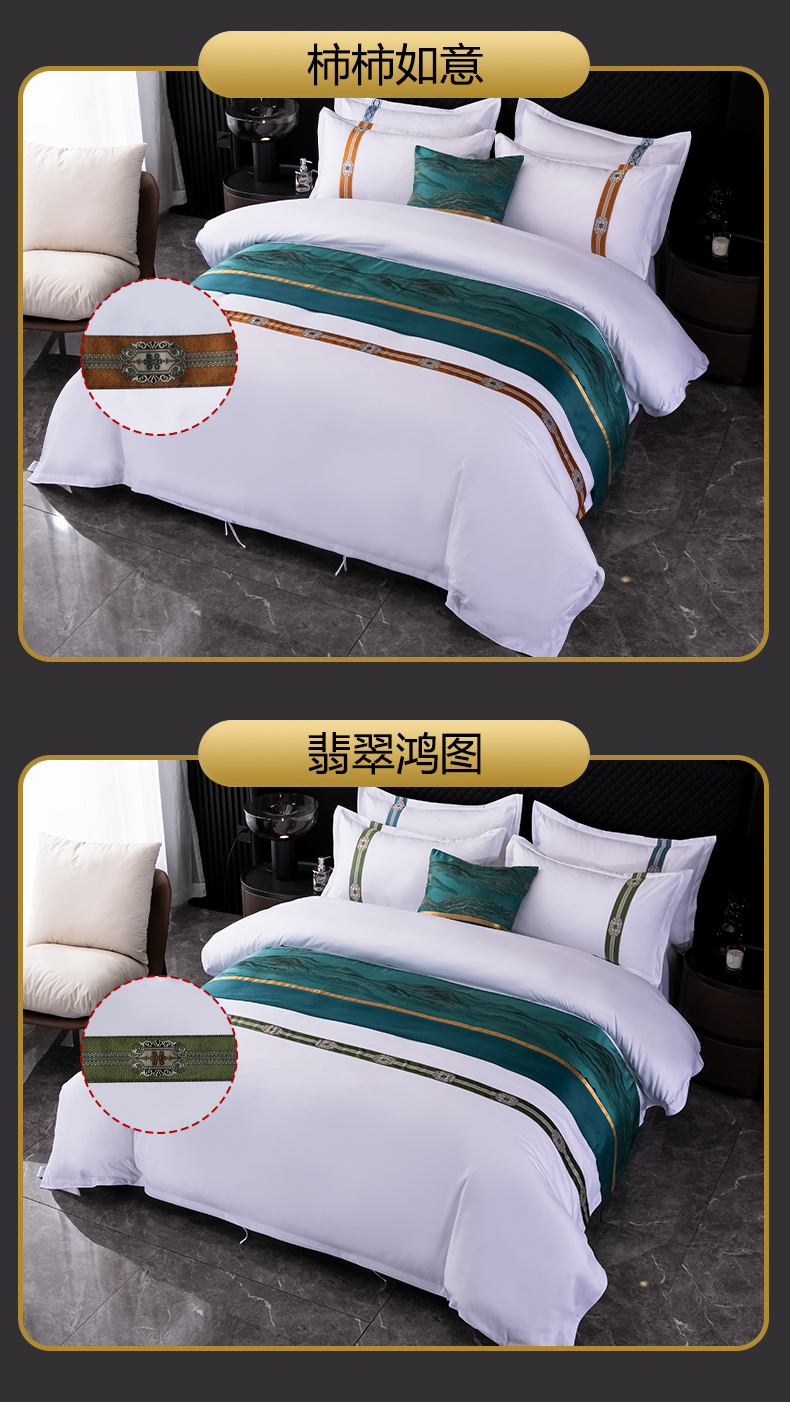 当前位置: 91家纺网 > 商品网购 > 床品套件 > 四件套 > 普通磨毛四件套 > 中乾酒店布草工厂店 2024新款120克加密织带款酒店磨毛四件套 蓝翎阁