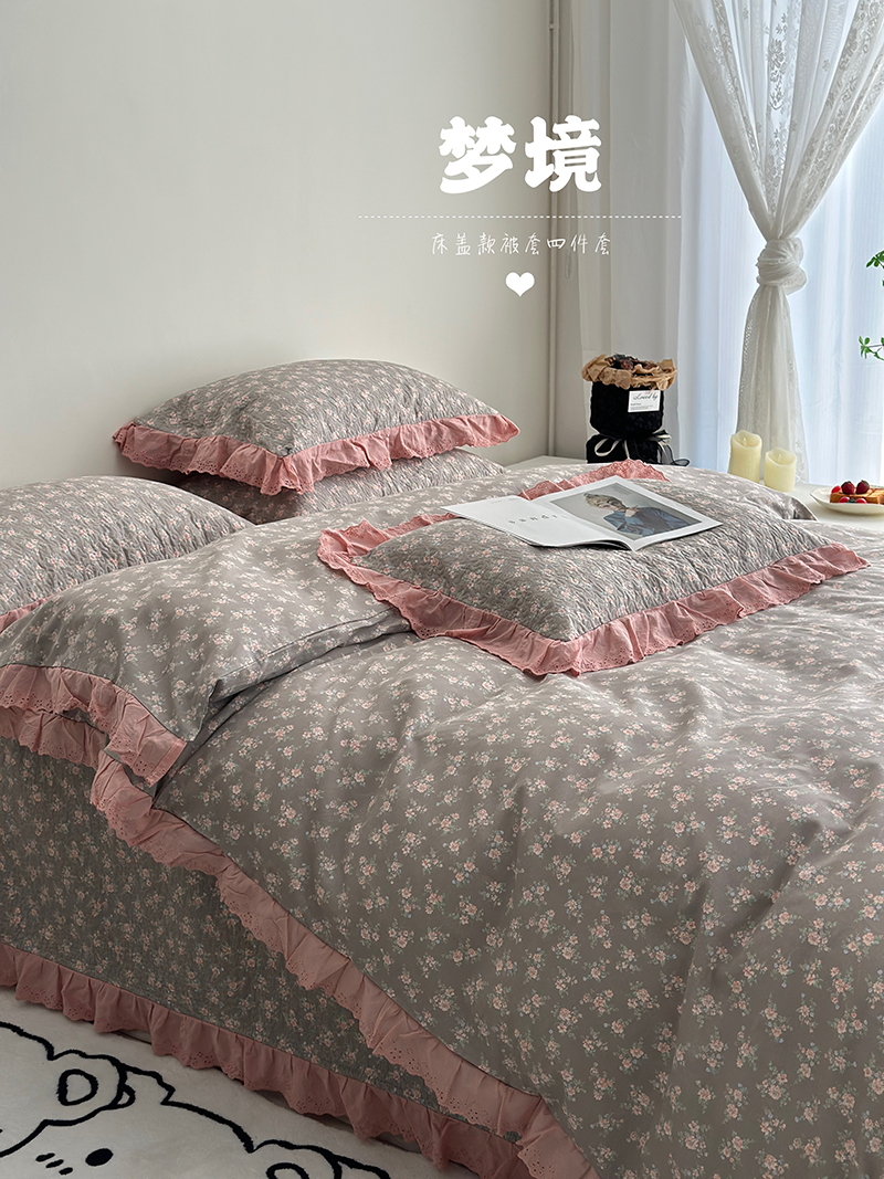 (总)佰织鑫家居 2026新款韩系花边款全棉砂洗多功能四件套夏被四件套(会员-5),洛伊,南山雏菊,思意绵绵,宛如初见,小柔花夕,悠悠花园