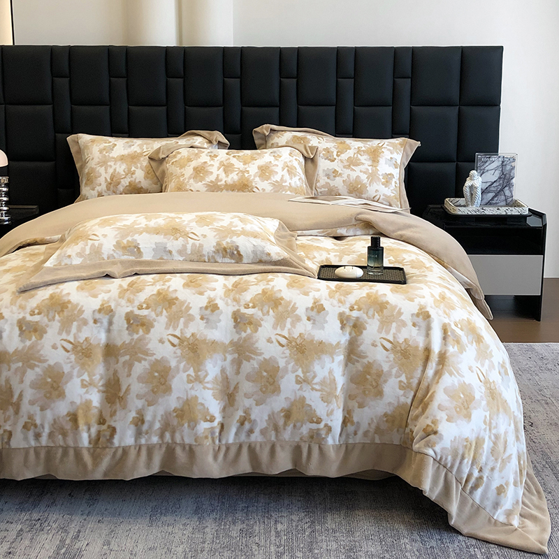 (总)若未家居 LOVEWE HOUSE 2025新款轻奢意式风仿真貂绒床盖四件套A版400克B版260克-北国雪乡,北国雪乡 暗夜灰,北国雪乡 咖,北国雪乡 驼