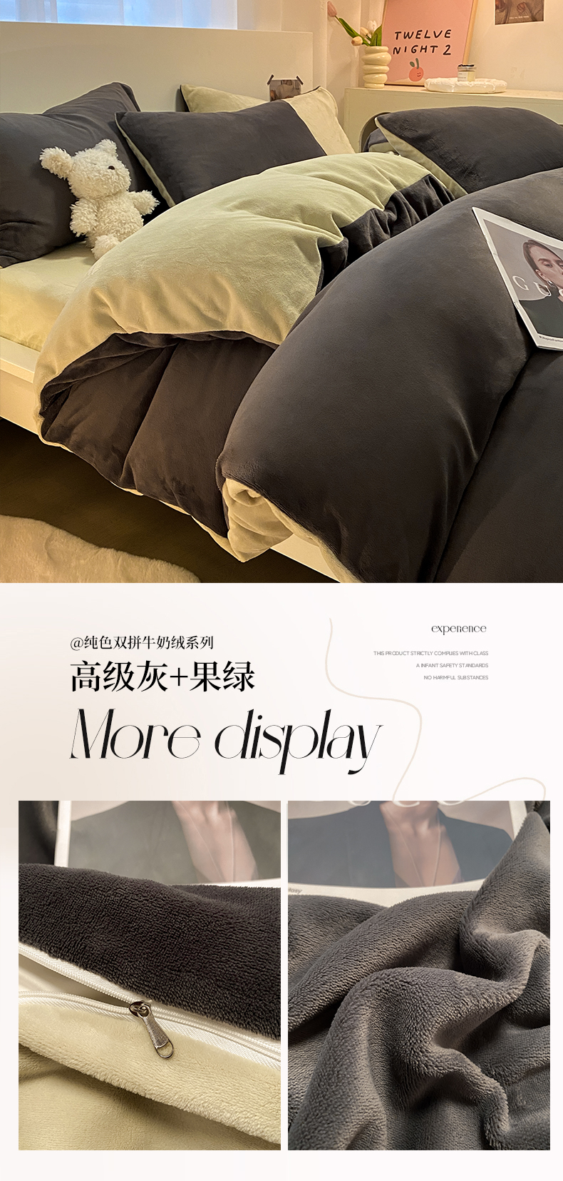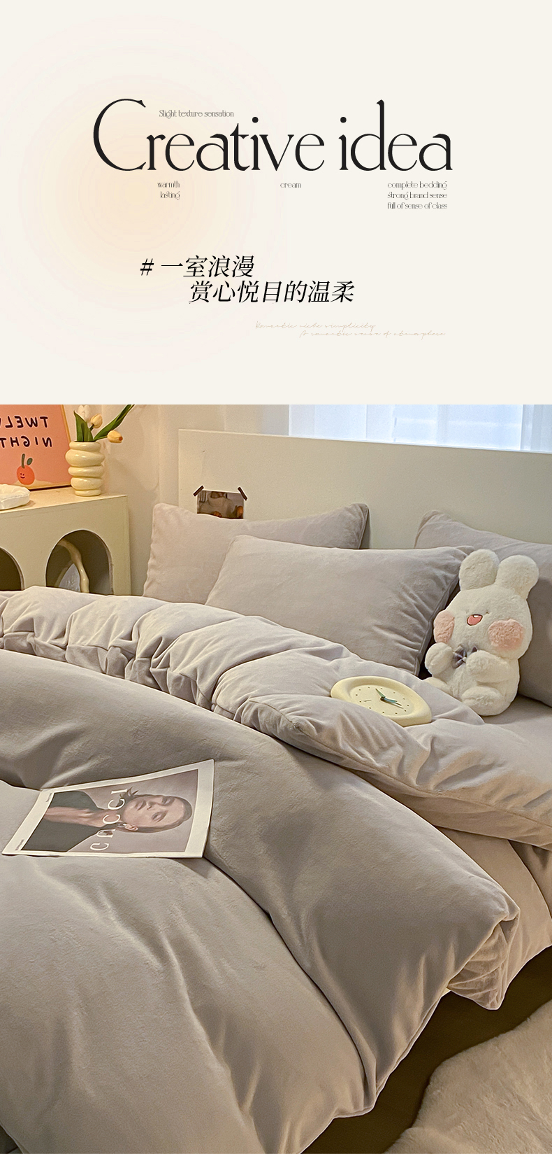 当前位置: 91家纺网 > 商品网购 > 床品套件 > 四件套 > 牛奶绒四件套 > (买家秀爆款不断货)A类母婴级简约纯色双拼牛奶绒四件套提花绒珊瑚绒四件套雪花绒四件套纯色牛奶绒四件套 浅灰