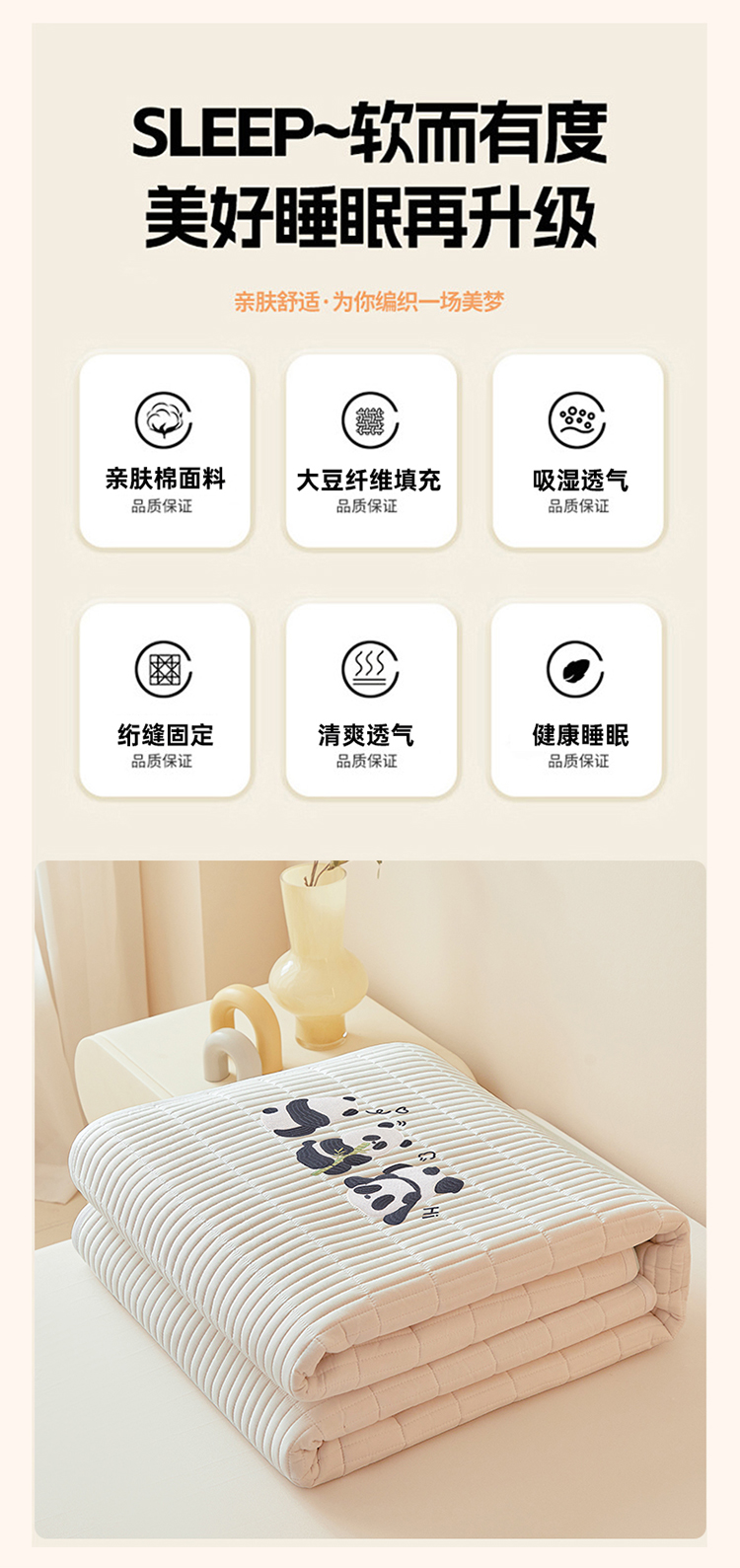 当前位置: 91家纺网 > 商品网购 > 床垫/床褥 > 普通床垫 > 2025春夏新款A类亲肤大豆床垫-刺绣系列 防水款熊猫嘟嘟床垫-云朵白