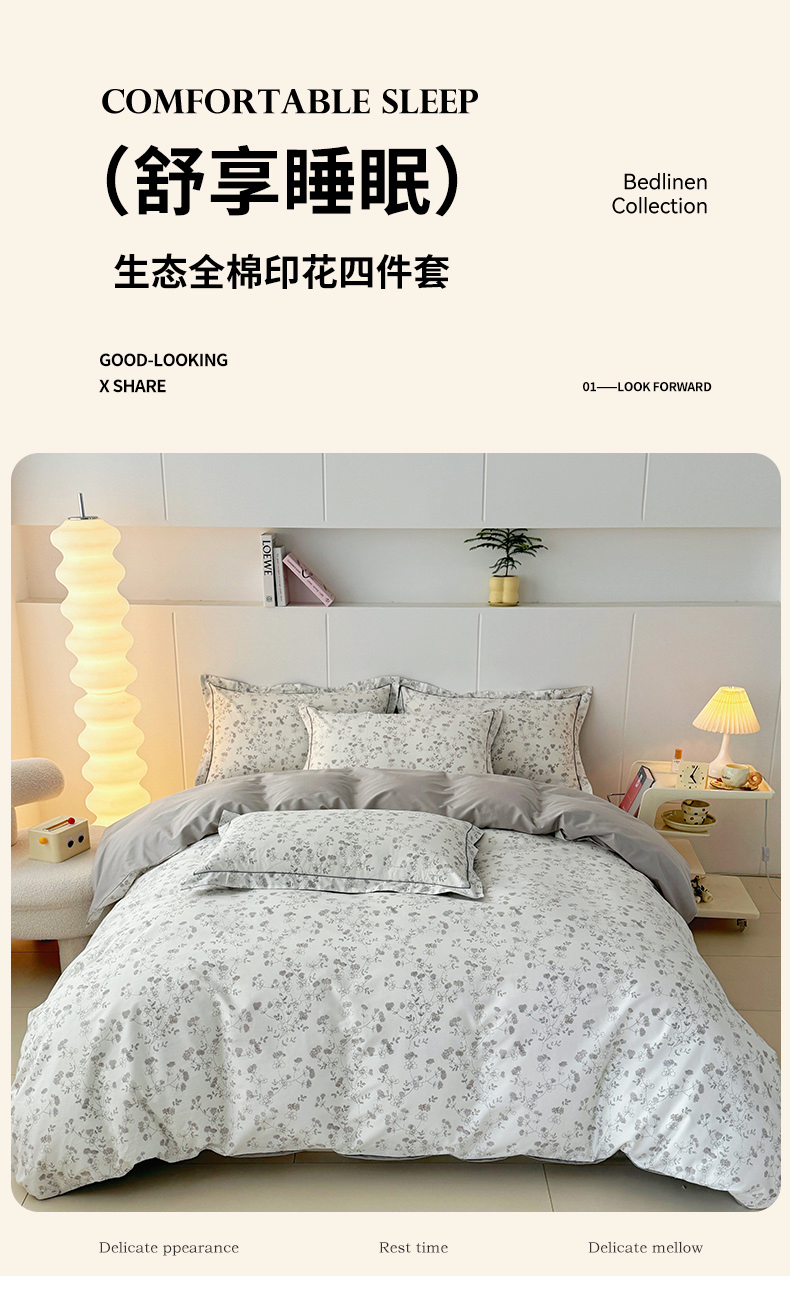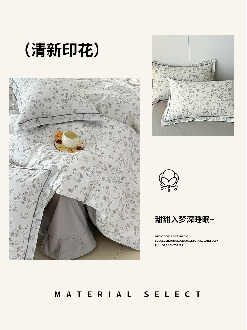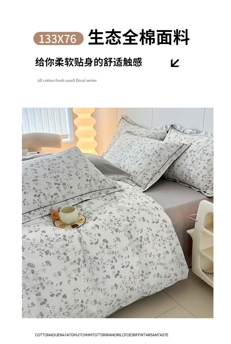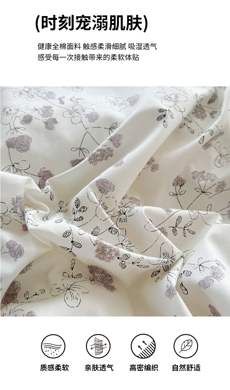 当前位置: 91家纺网 > 商品网购 > 床品套件 > 四件套 > 全棉普通四件套 > 2025新款133X76宽幅全棉纯棉印花系列四件套 夜来香-灰