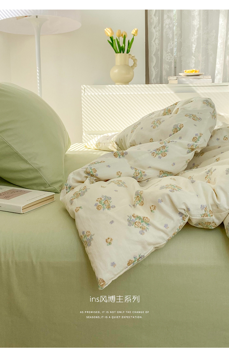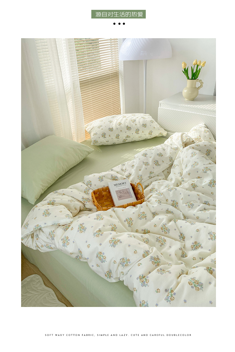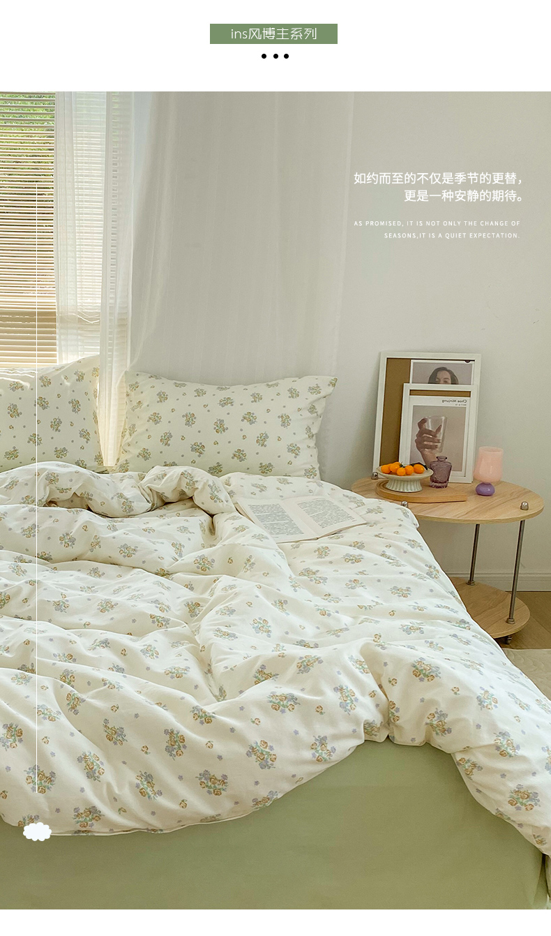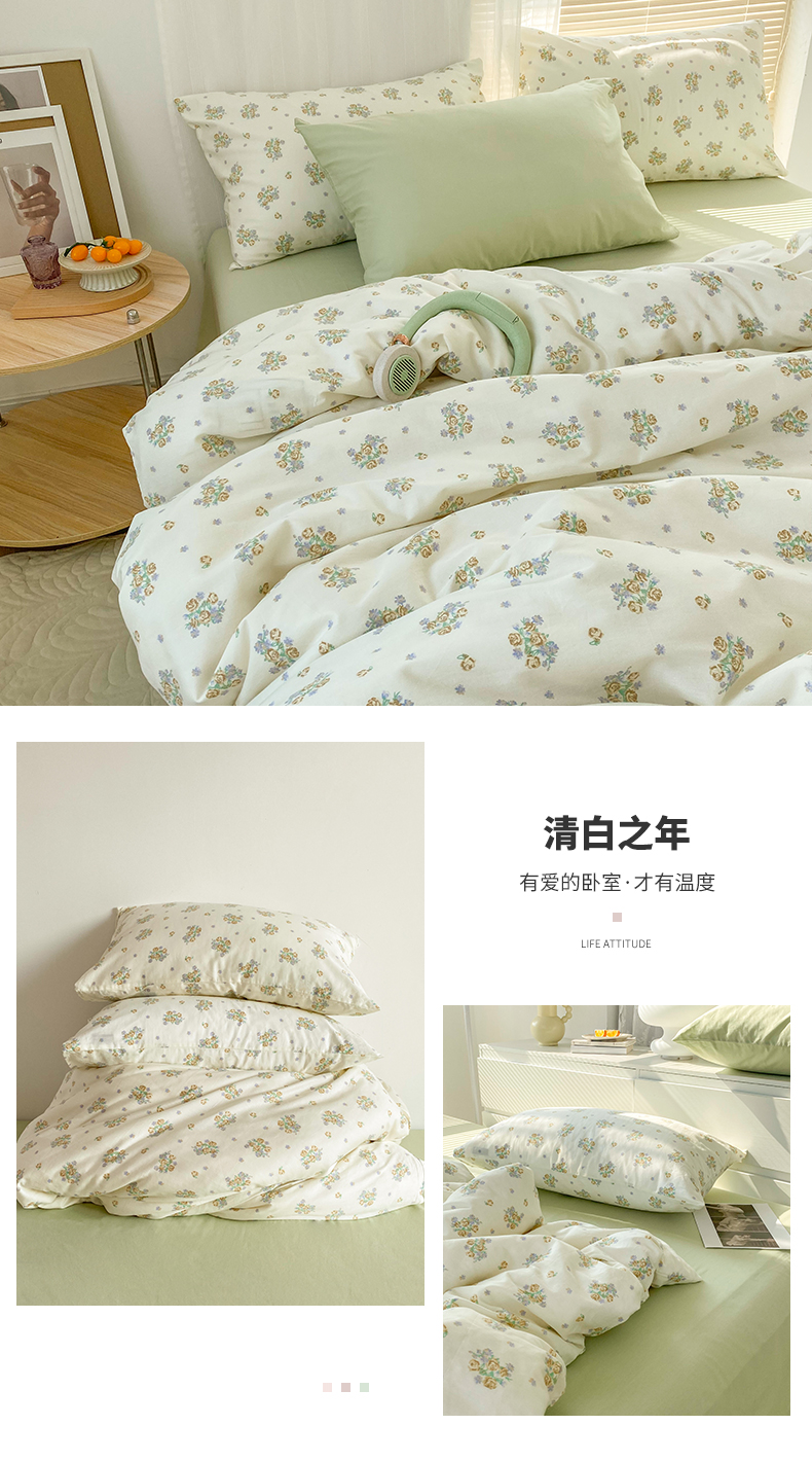 当前位置: 91家纺网 > 商品网购 > 床品套件 > 四件套 > 全棉普通四件套 > 尺素 2025新款纯棉印花13372全棉田园风被套韩式小清新碎花四件套 清白之年