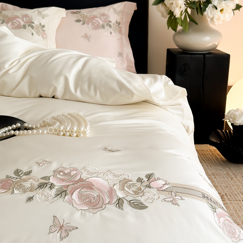 (总)佳汐蓝家纺 2025新款100支贡缎提花全棉刺绣婚庆四件套-繁花佩影,繁花佩影
