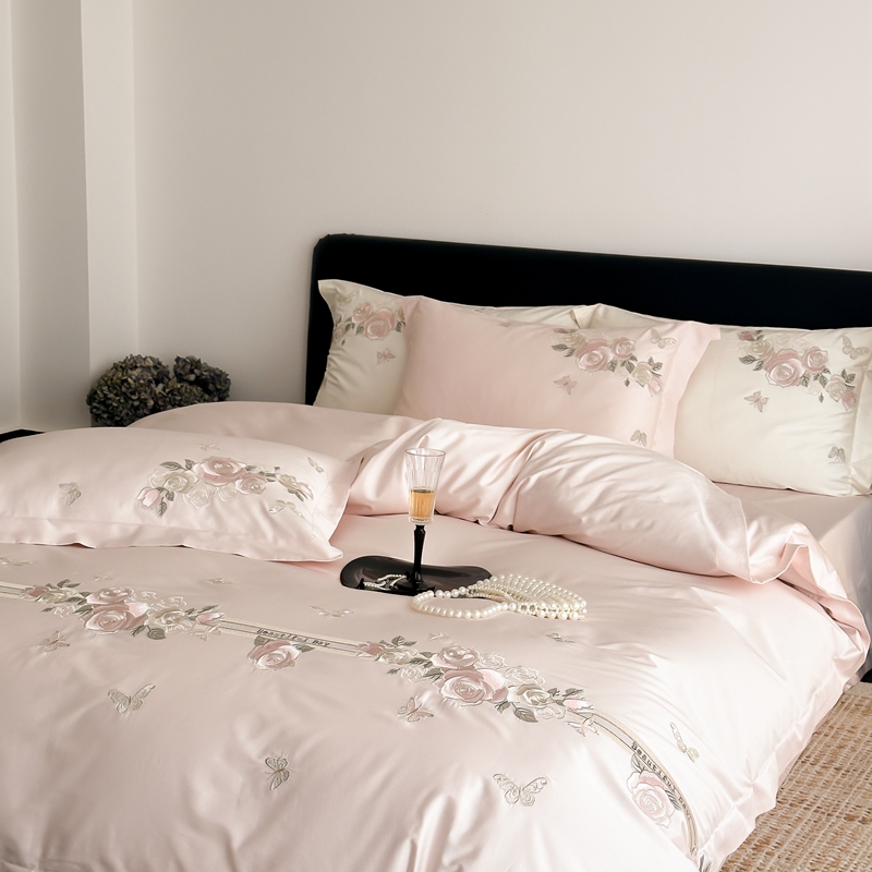 (总)佳汐蓝家纺 2025春夏新款天丝棉蝶舞繁花绣花天丝四件套,蝶舞繁花·粉,蝶舞繁花·蓝