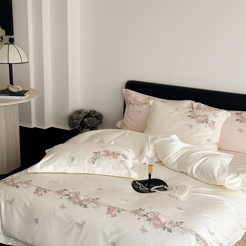 商品名称:(总)佳汐蓝家纺 2025新款100支澳棉刺绣宽边四件套-花非花