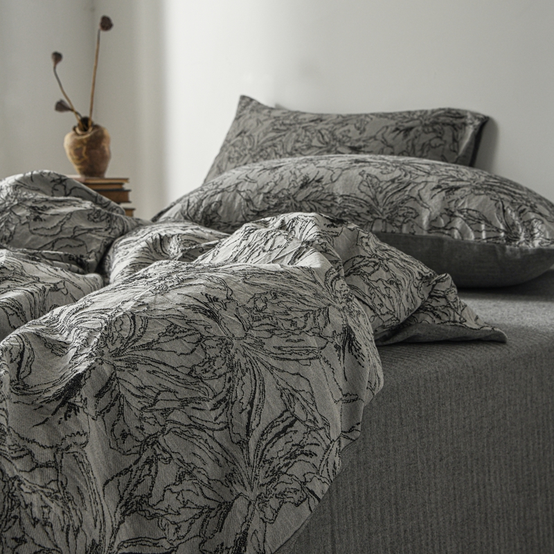 (总)简家居 2025新款20%亚麻80%棉棉麻提花四件套-法颂,法颂