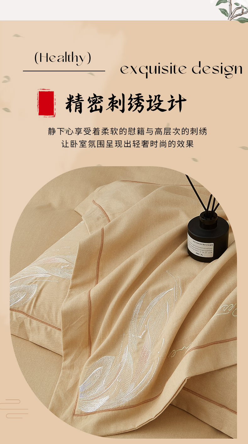 商品名称:雲归梦 2025新款全棉加厚磨毛绣花宽边工艺四件套-叶语情深 叶语情深-棕