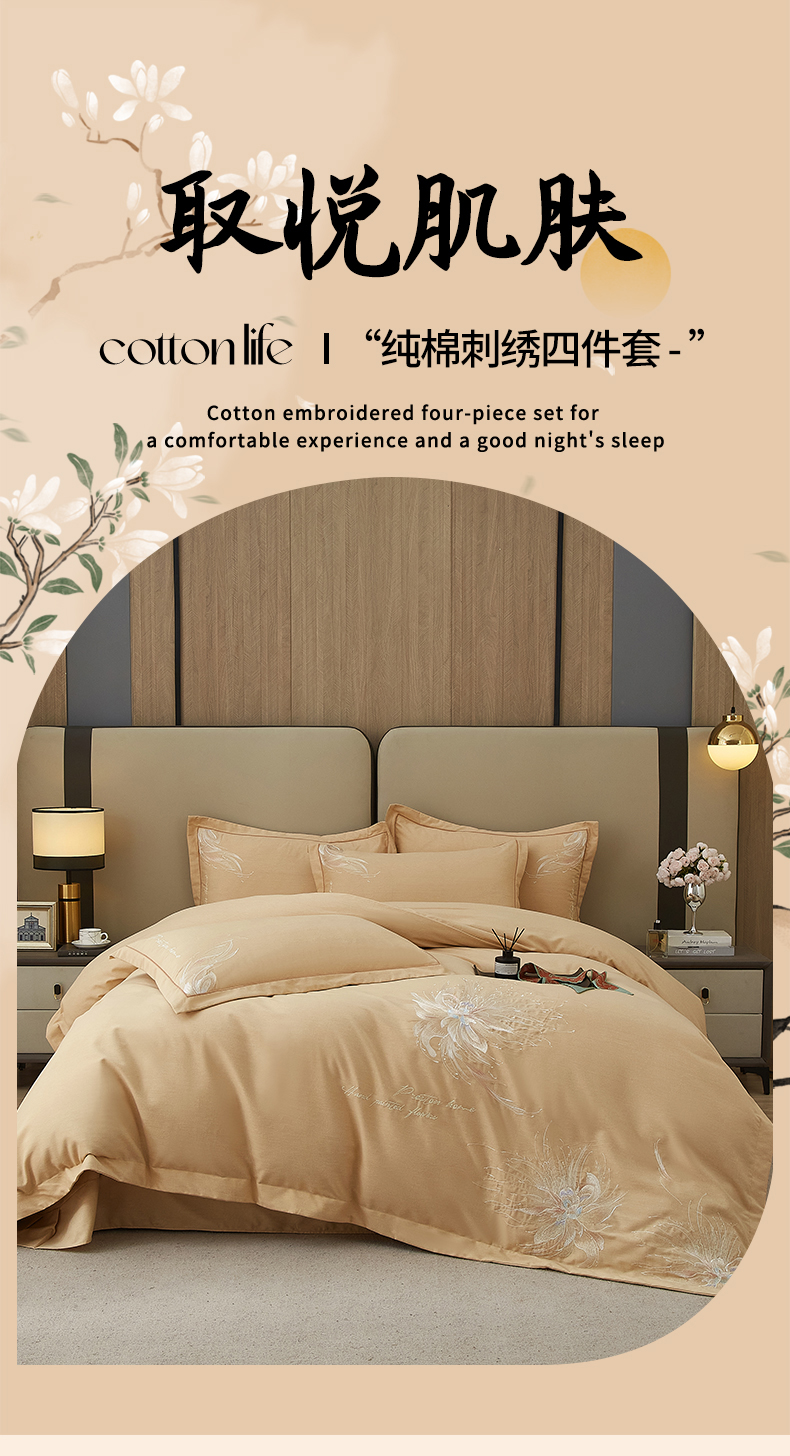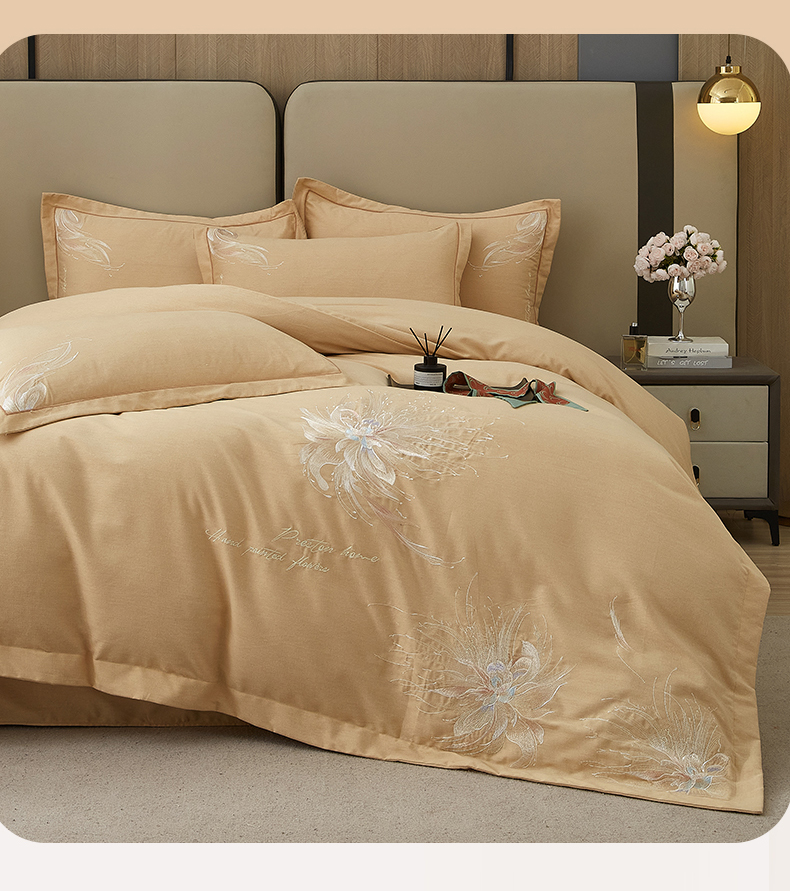 (总)雲归梦 2021新款全棉生态磨毛刺绣四件套,慕思-橙色,慕思-粉紫,慕思-灰,慕思-米黄,慕思-青绿,慕思-天蓝