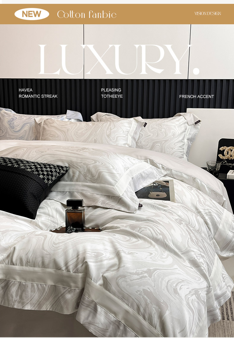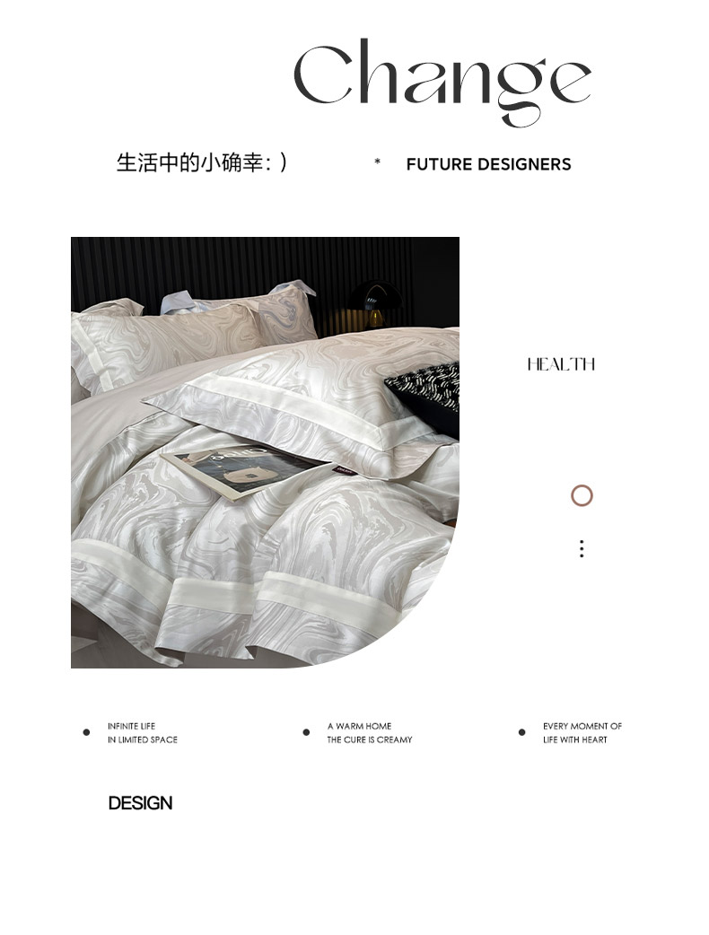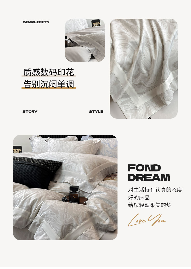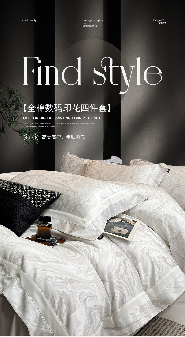 商品名称:【直播爆款】A类全棉数码印花四件套纯棉轻奢风长绒棉床单被套条纹床上用品 SM浮影-梵希银