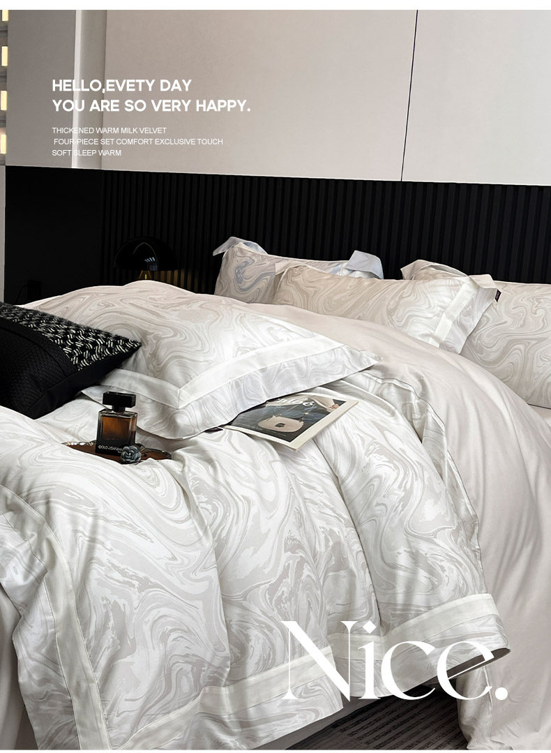 (总) 冬季直播爆款九斤重轻奢高端加厚保暖牛奶绒四件套刺绣宝宝绒轻奢风纯色床单被套床笠款床上用品-花迹,花迹-果汁粉,花迹-蜜豆红,花迹-椰奶蓝