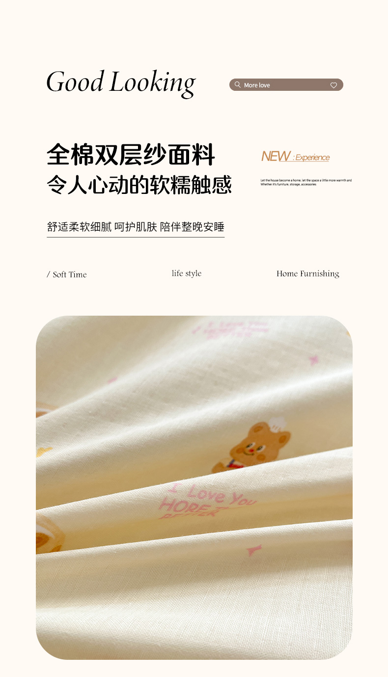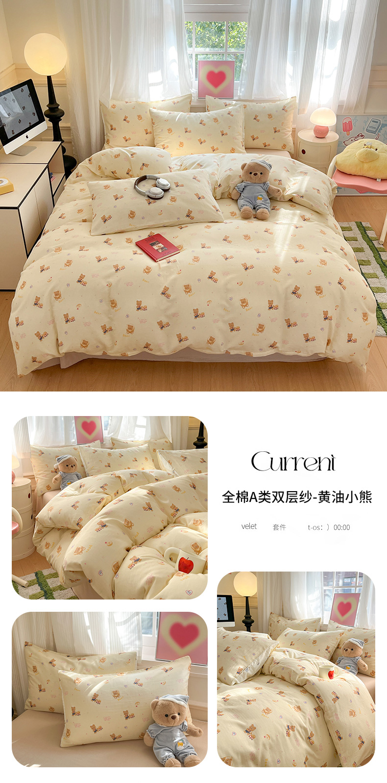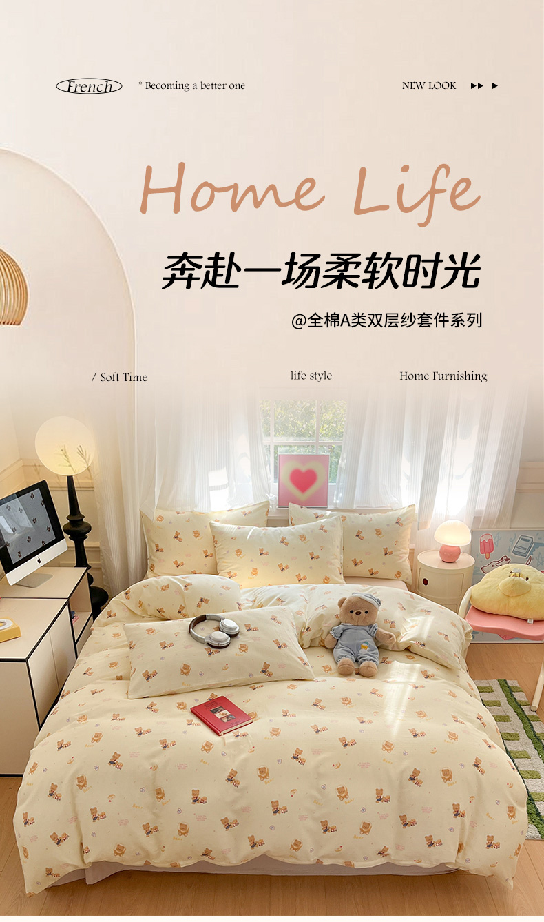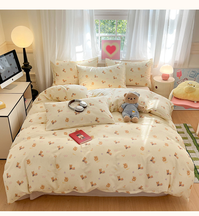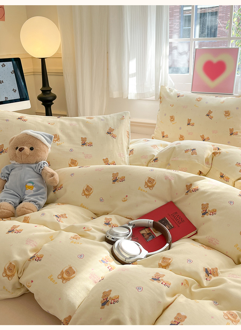 当前位置: 91家纺网 > 商品网购 > 床品套件 > 四件套 > 博雅 2025新款全棉A类双层纱四件套 黄油小熊
