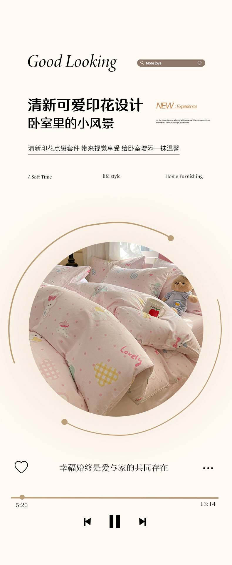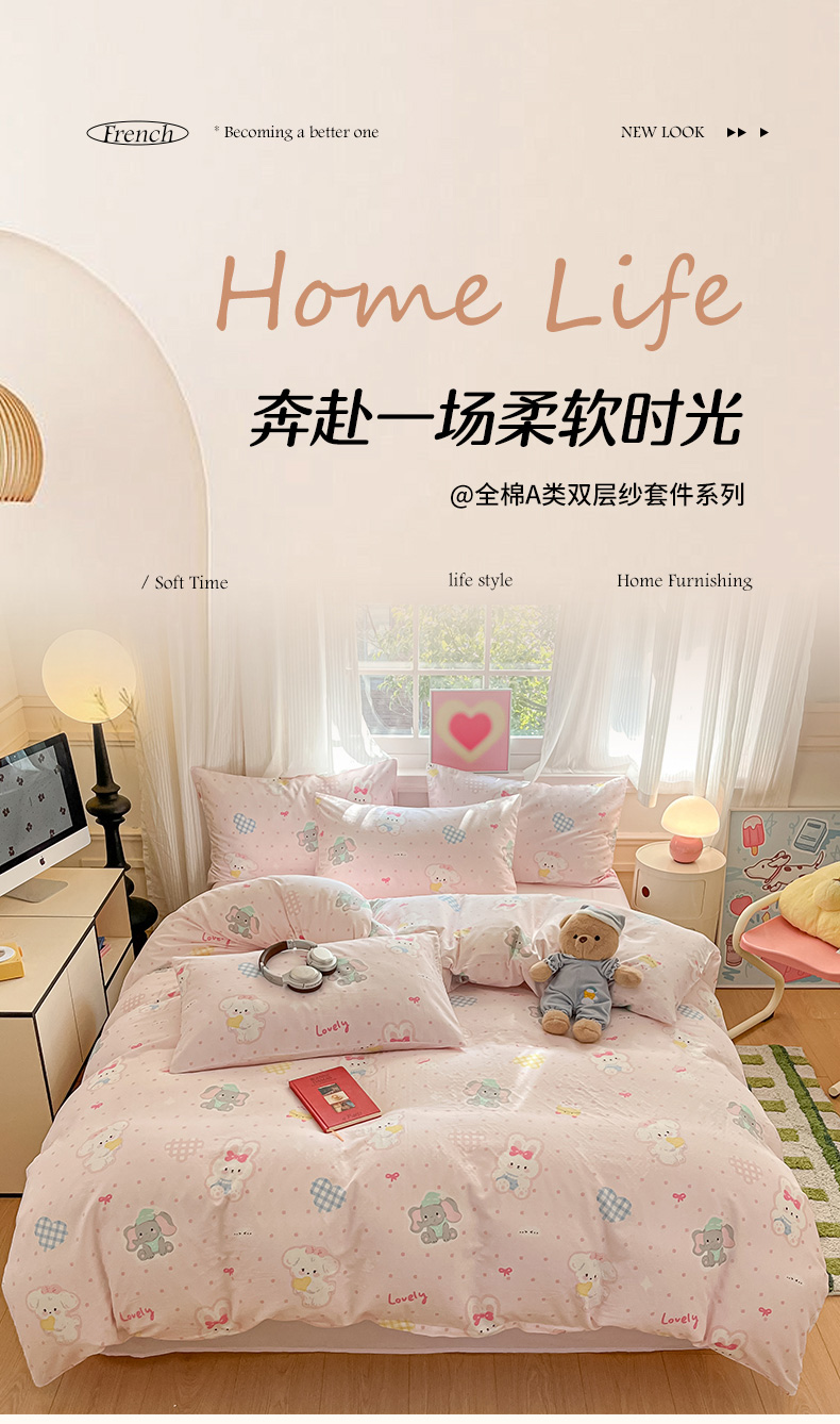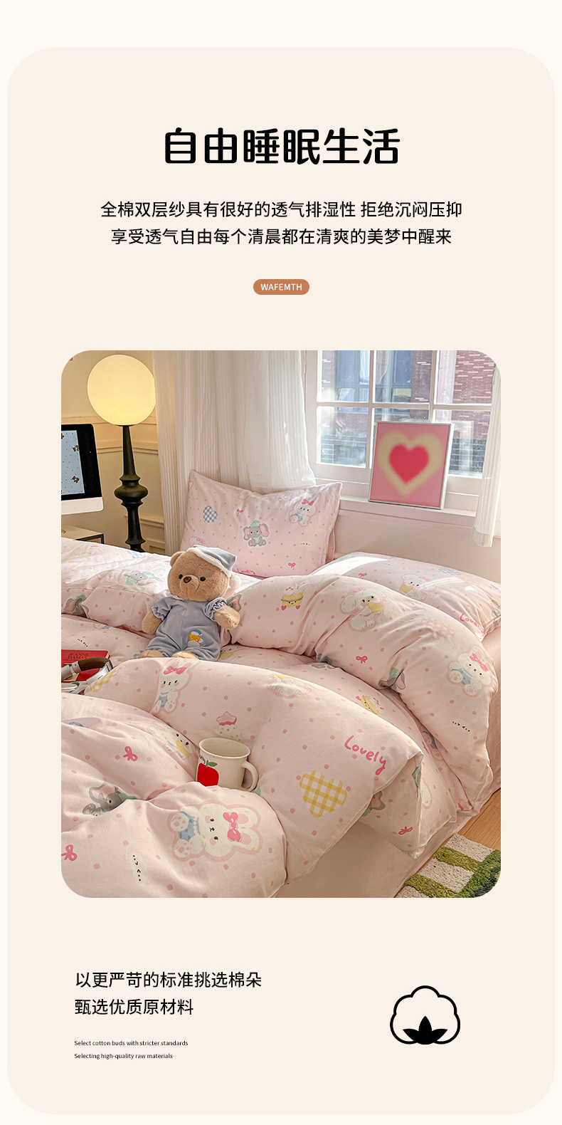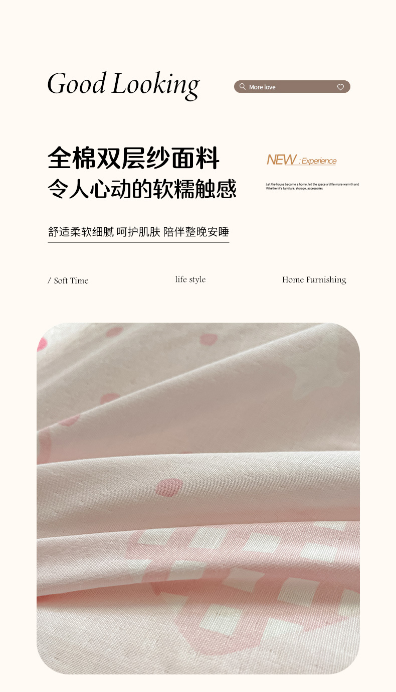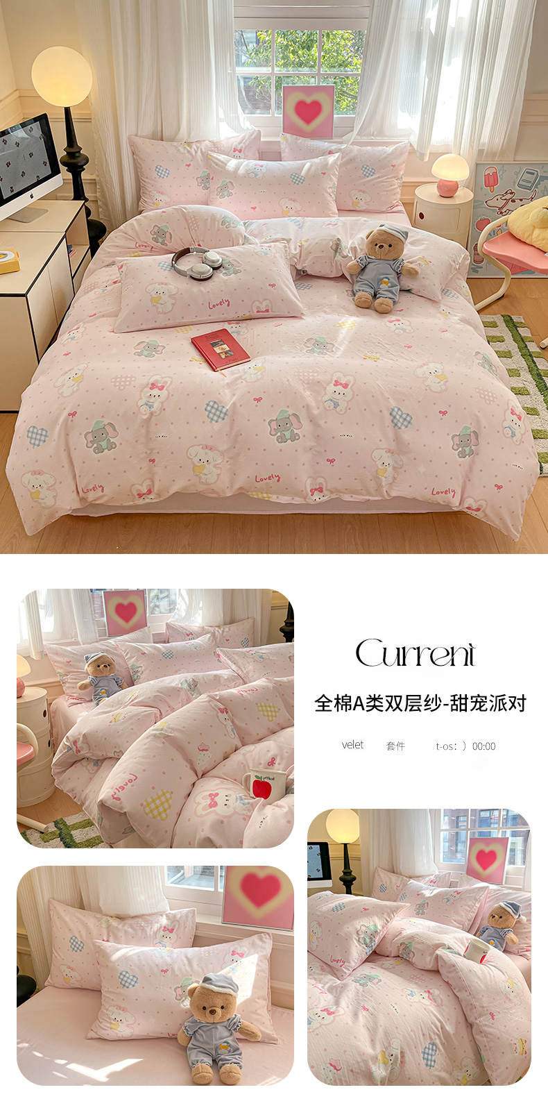当前位置: 91家纺网 > 商品网购 > 床品套件 > 四件套 > 博雅 2025新款全棉A类双层纱四件套 甜宠派对