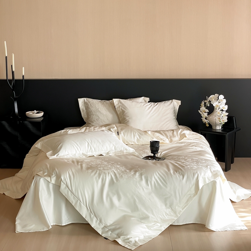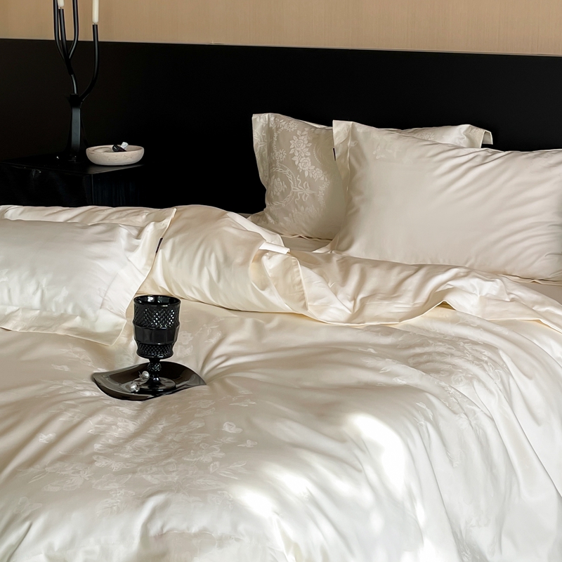 窝米 2025春季新品100支长绒棉轻奢提花四件套系列 赫本-白百合