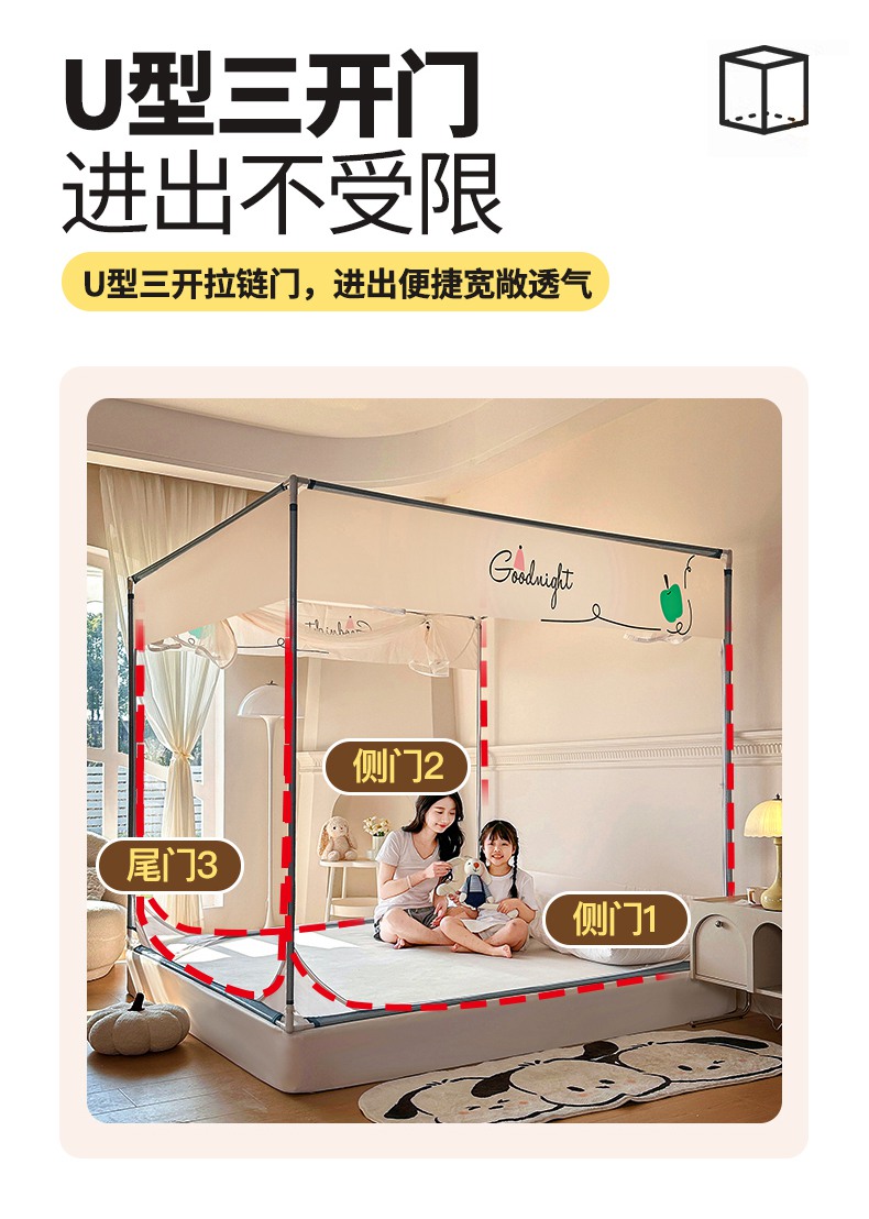 当前位置: 91家纺网 > 商品网购 > 床上用品 > 蚊帐 > 坐床式蚊帐 > 青竹苑 2025新款三门大版上下布印花外穿坐床蚊帐床笠式防摔方帐 羊咩咩