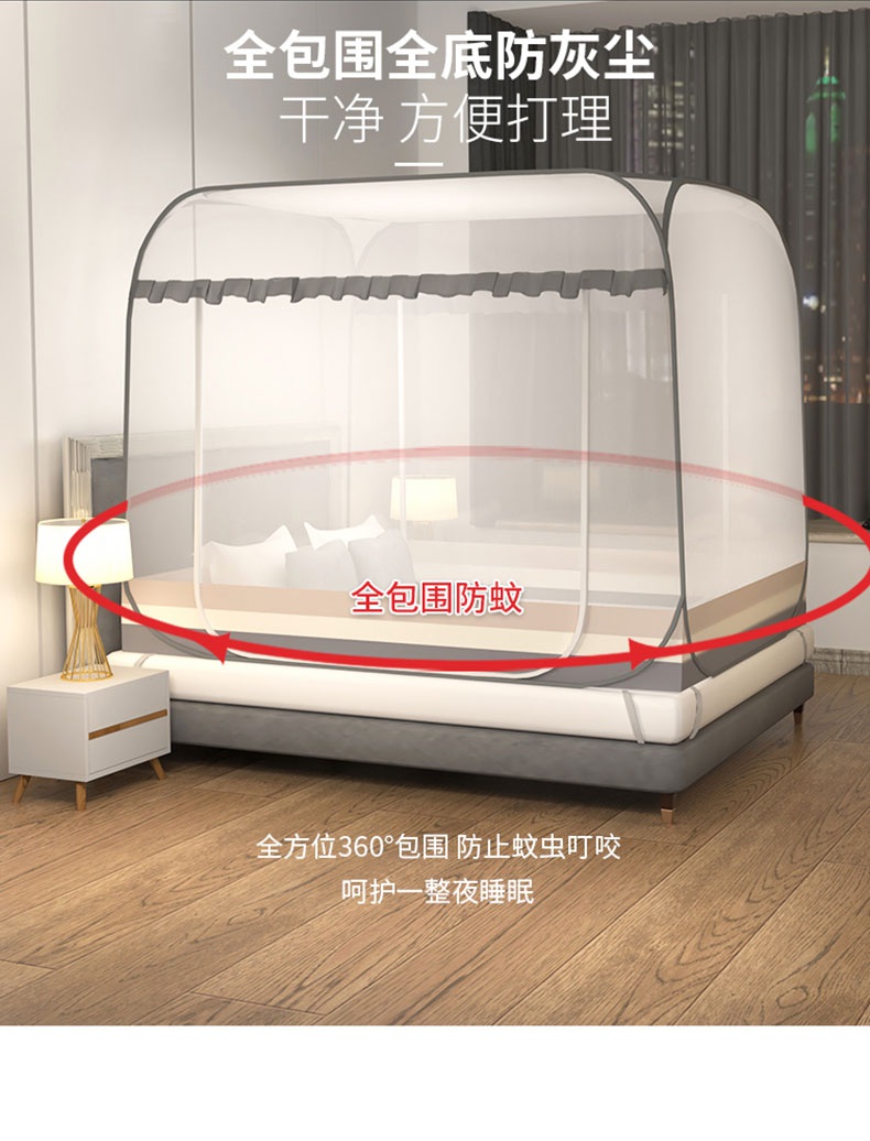 商品名称:青竹苑 2025新款免安装大顶魔术蚊帐 条纹灰