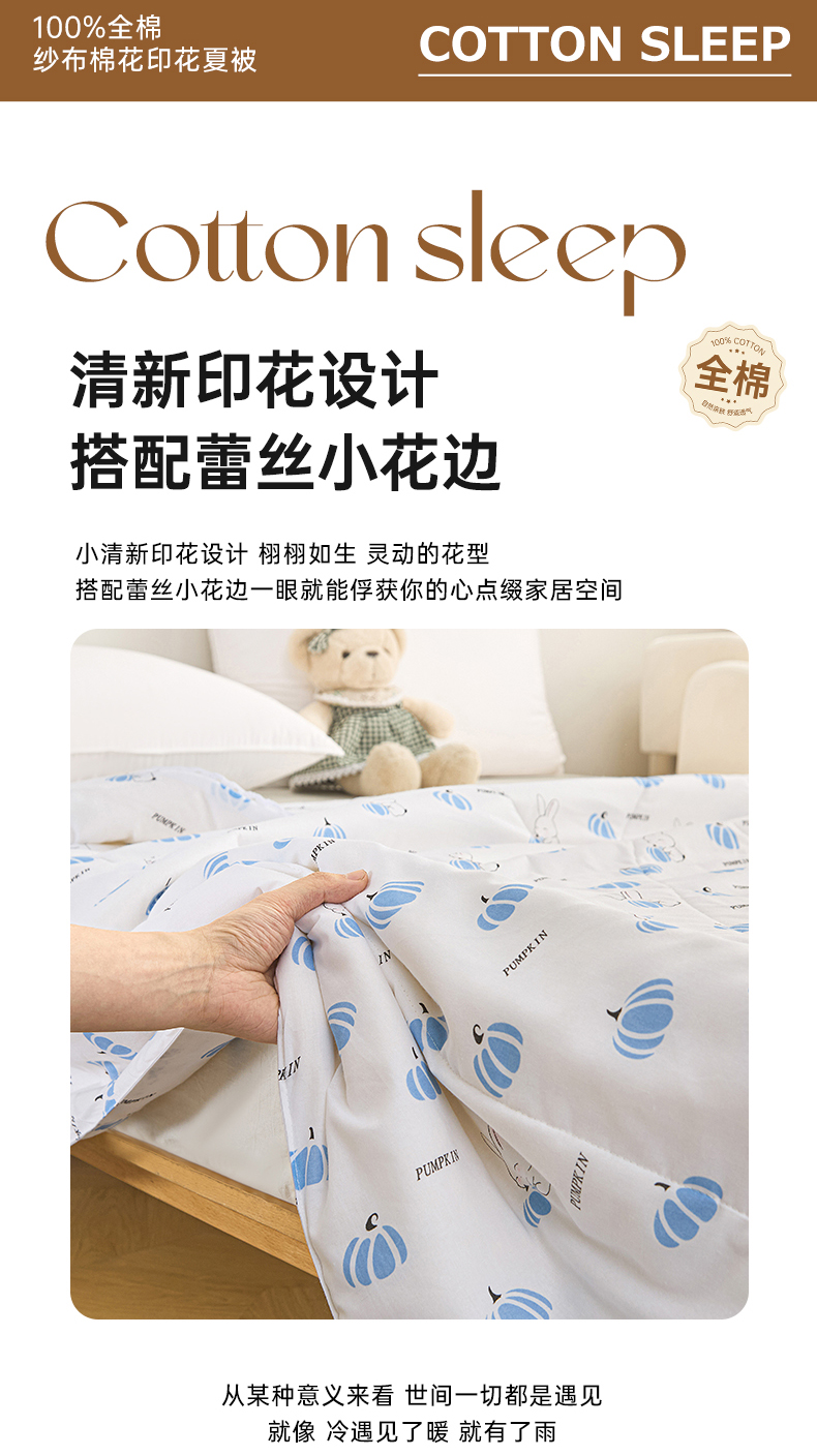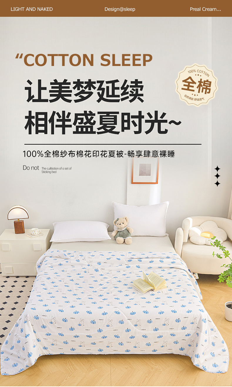 棉乐町 2025新款全棉棉花夏凉被纯棉夏被空调被子 蓝小兔