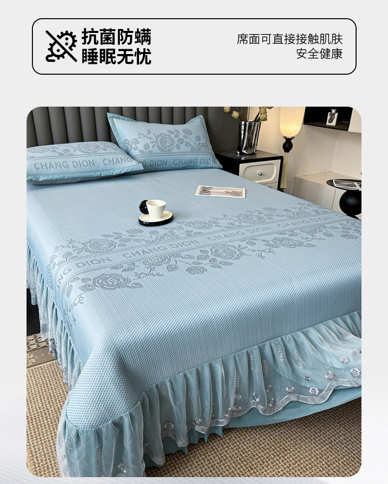 (总)阿牛席业 2025新款冰藤凉席系列冰藤绣花韵雅席,韵雅-粉,韵雅-粉床笠款,韵雅-灰,韵雅-灰床笠款,韵雅-蓝,韵雅-蓝床笠款